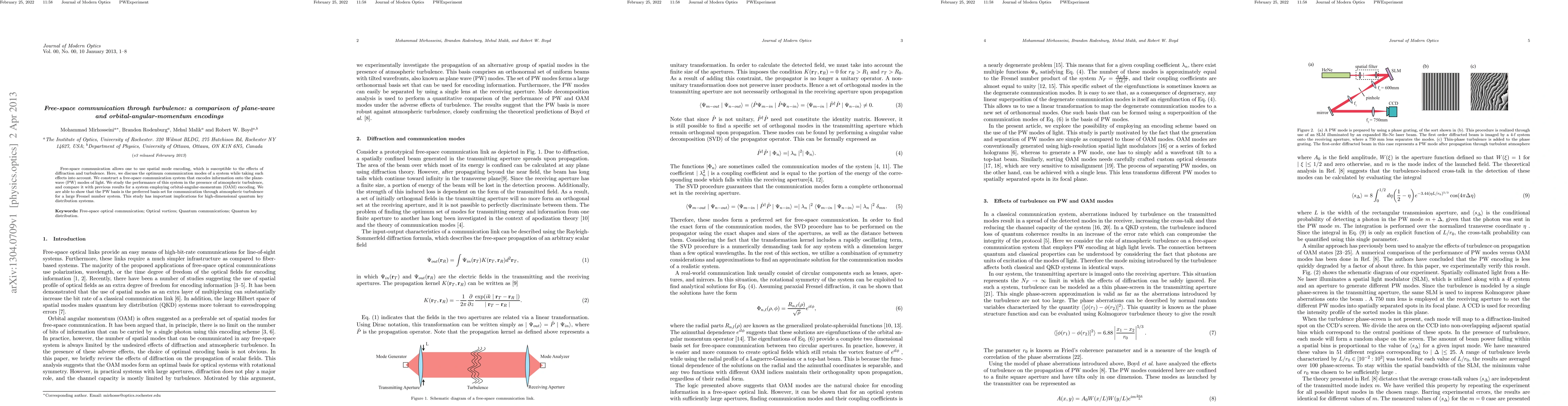 This paper compares plane-wave and orbital-angular-momentum encodings for free-space communication through atmospheric turbulence, finding that plane-wave encoding outperforms in large Fresnel number systems, with significant implications for quantum key distribution.