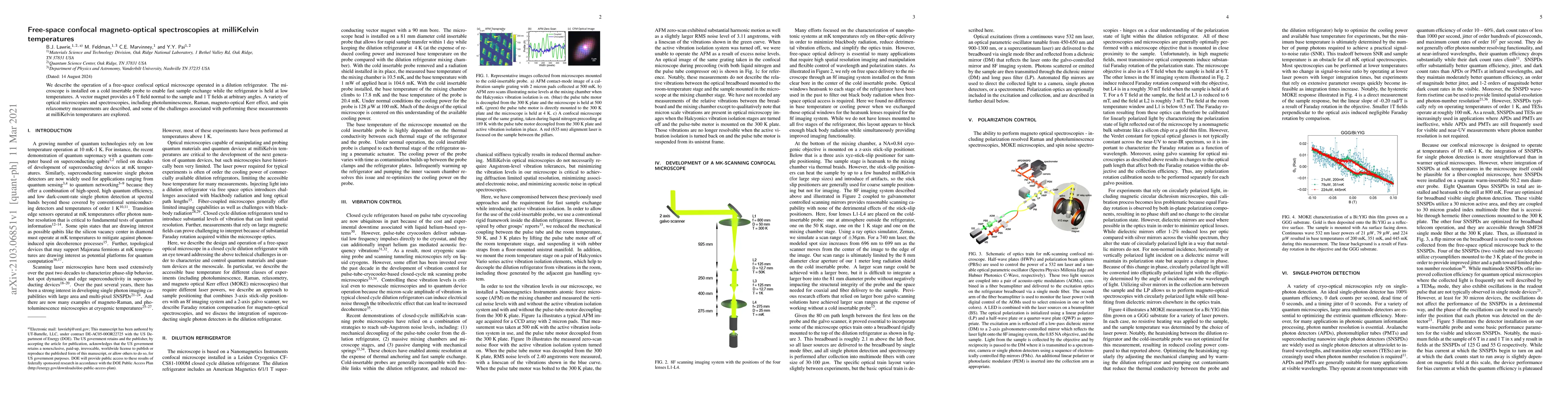 This paper details a free-space confocal optical microscope operating in a dilution refrigerator, enabling rapid sample exchange at milliKelvin temperatures. It explores various optical microscopies and spectroscopies, including photoluminescence and Raman, under magnetic fields, highlighting challenges at such low temperatures.