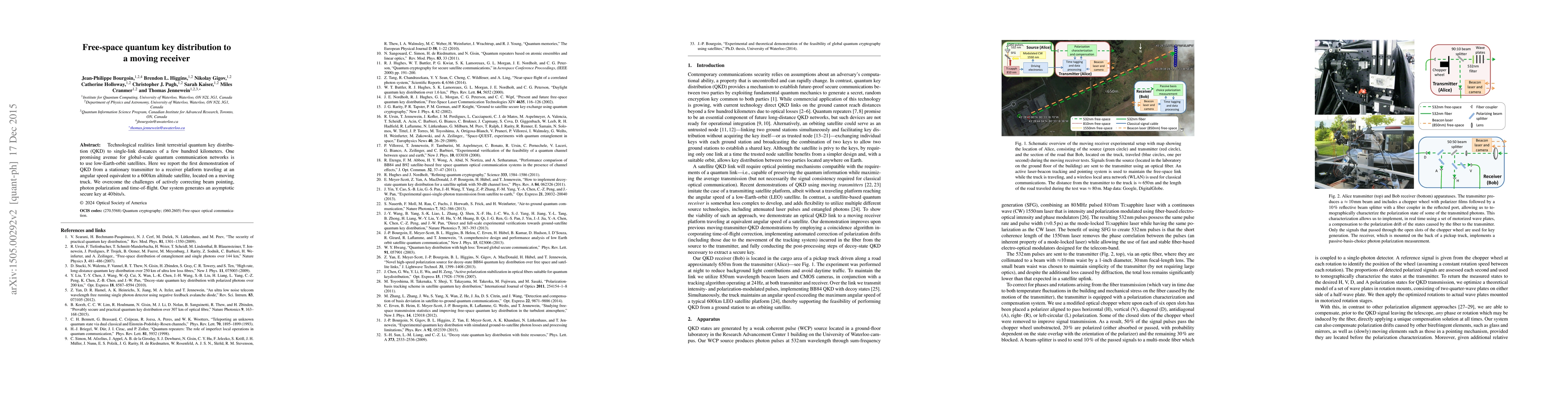 Scientists demonstrated a quantum key distribution system that works from a stationary transmitter to a moving receiver at 600 km altitude, generating an asymptotic secure key at 40 bits/s.