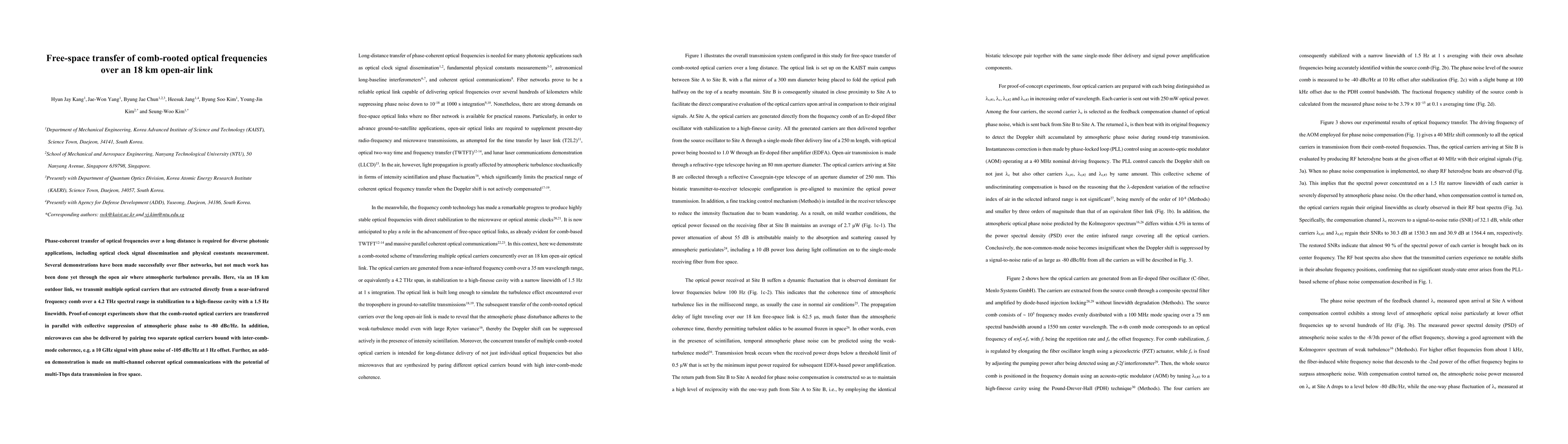 Researchers successfully transmitted optical frequencies over 18 km in free space, achieving -80 dBc/Hz phase noise suppression and paving the way for high-speed data transmission.