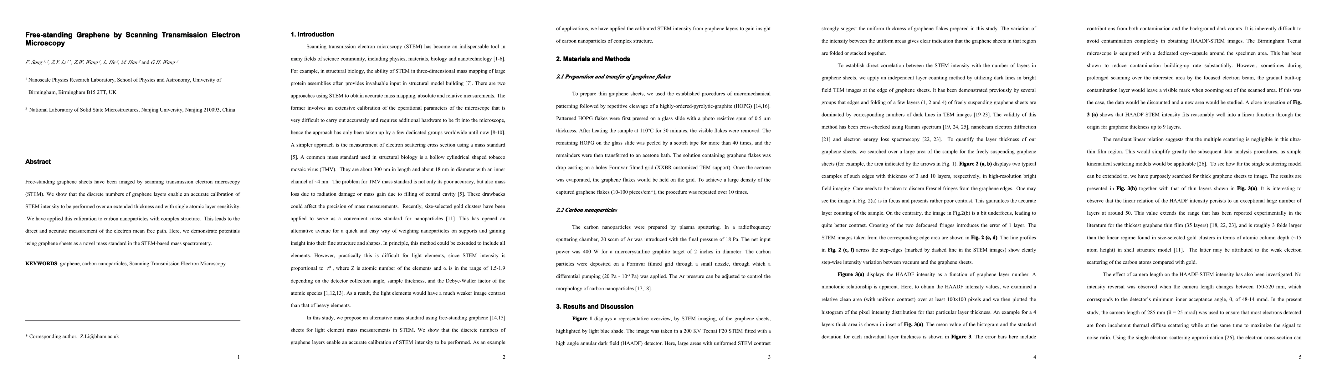 This research uses free-standing graphene sheets as a precise mass standard in STEM-based mass spectrometry, achieving single atomic layer sensitivity and accurate calibration for measuring electron mean free path. This method provides insights into the structure of carbon nanoparticles.