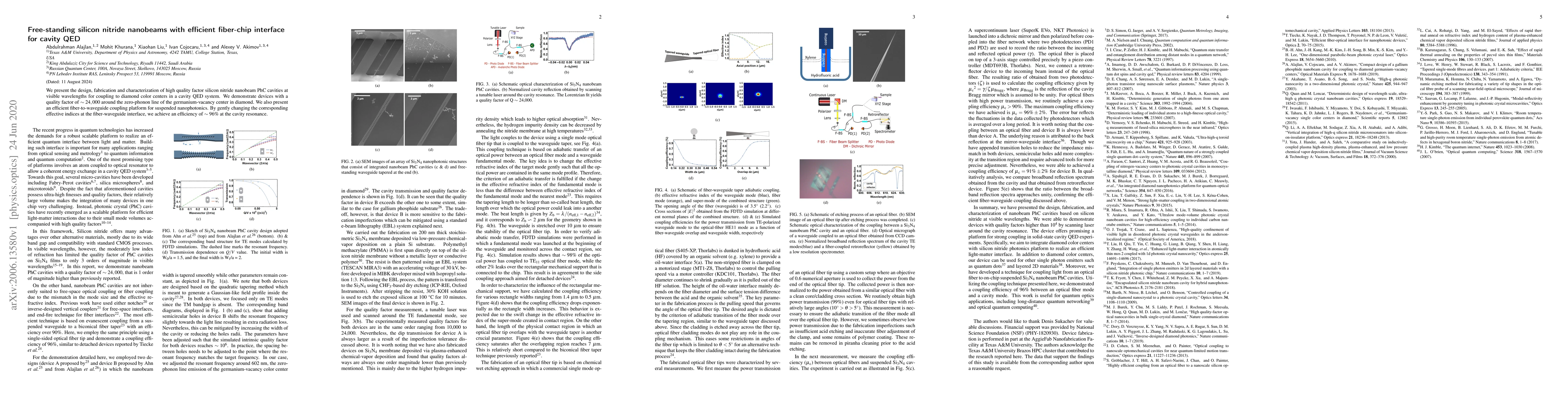 This paper details the fabrication of high-quality silicon nitride nanobeam PhC cavities for cavity QED, achieving a quality factor of 24,000 and demonstrating efficient 96% fiber-to-waveguide coupling for suspended nanophotonics.