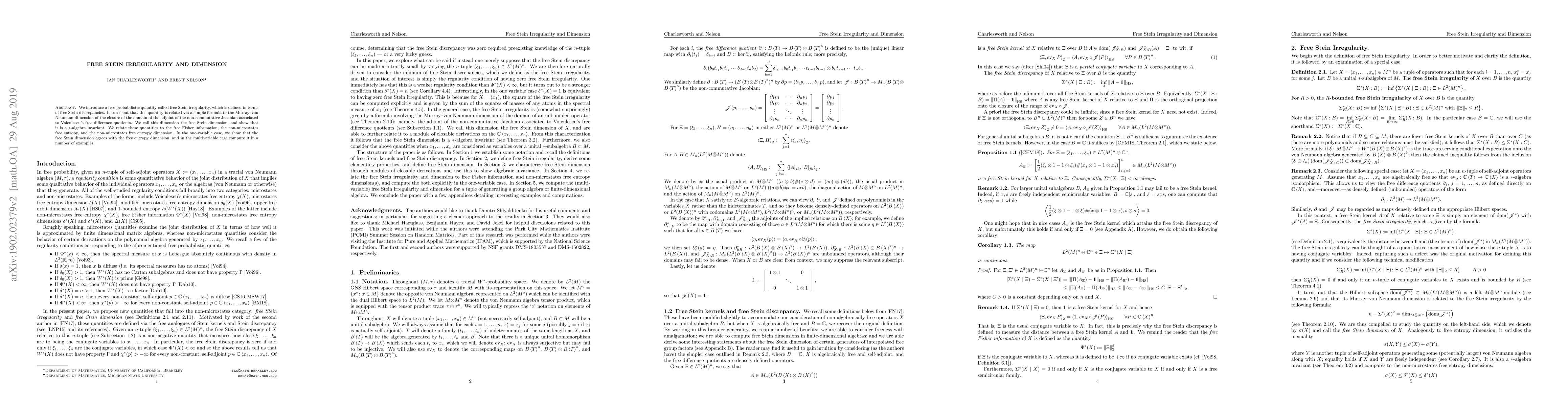We introduce a free probabilistic quantity called free Stein irregularity, which is defined in terms of free Stein discrepancies. It turns out that this quantity is related via a simple formula to the Murray--von Neumann dimension of the closure of the domain of the adjoint of the non-commutative Jacobian associated to Voiculescu's free difference quotients. We call this dimension the free Stein dimension, and show that it is a $*$-algebra invariant. We relate these quantities to the free Fisher information, the non-microstates free entropy, and the non-microstates free entropy dimension. In the one-variable case, we show that the free Stein dimension agrees with the free entropy dimension, and in the multivariable case compute it in a number of examples.