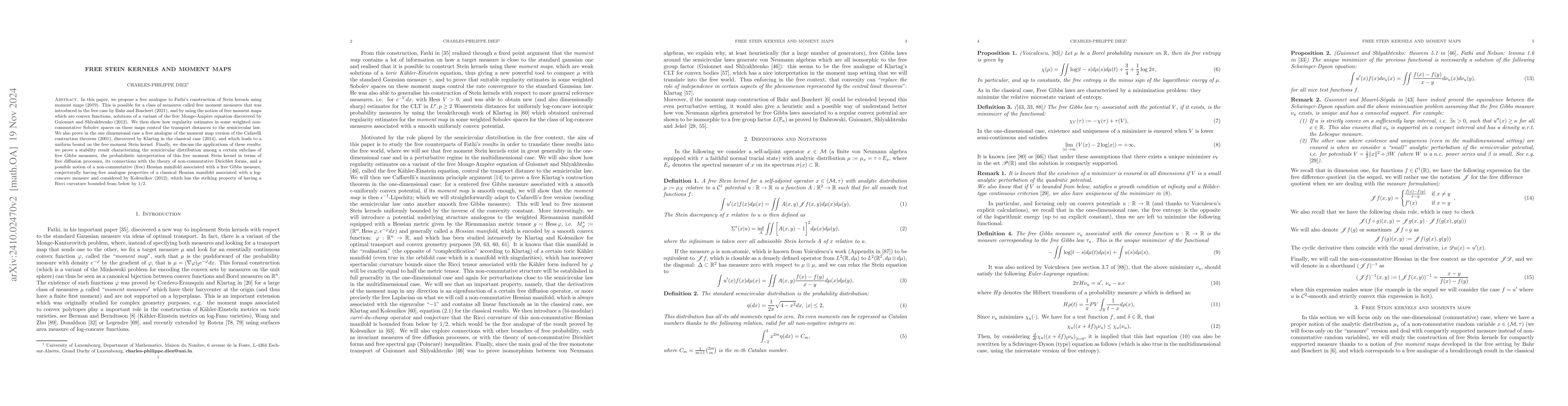 This paper develops a free analogue of Fathi's Stein kernel construction using free moment maps, establishing regularity estimates in non-commutative Sobolev spaces and proving a free version of the Cafarelli contraction theorem. It also explores applications, including stability results for semicircular distributions and connections to non-commutative Dirichlet forms.