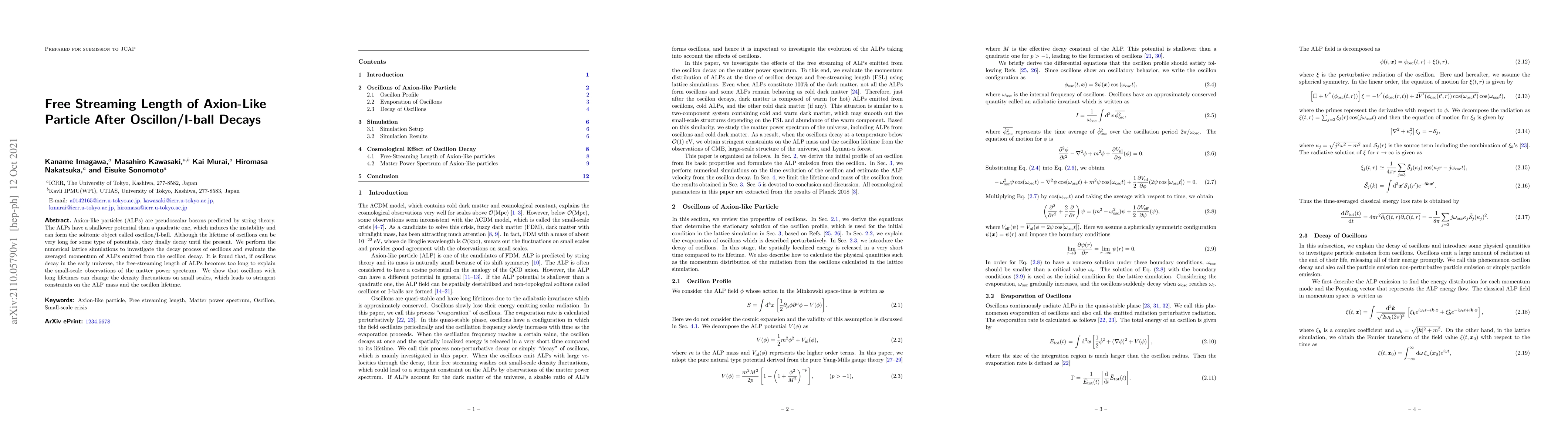 This paper investigates the decay of oscillons/I-balls, solitonic objects formed by axion-like particles (ALPs), and evaluates the emitted ALPs' averaged momentum. It finds that oscillon decay in the early universe could lead to ALPs with long free-streaming lengths, conflicting with small-scale matter power spectrum observations, thus imposing constraints on ALP mass and oscillon lifetime.