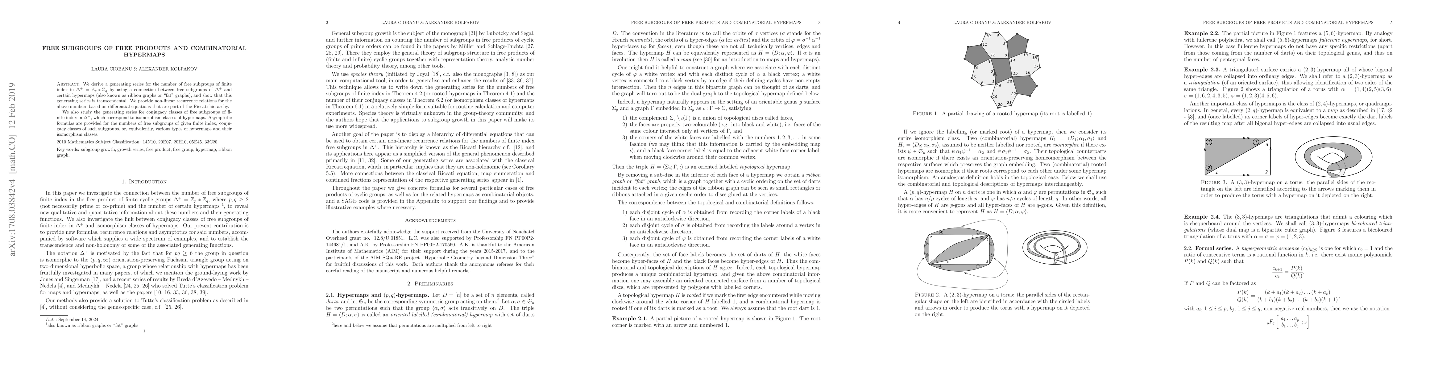 This paper establishes a generating series for free subgroups of finite index in the free product $\mathbb{Z}_p*\mathbb{Z}_q$, connecting these subgroups to combinatorial hypermaps, and proves this series is transcendental. It also provides non-linear recurrence relations via differential equations and asymptotic formulas for the numbers of such subgroups and hypermaps.