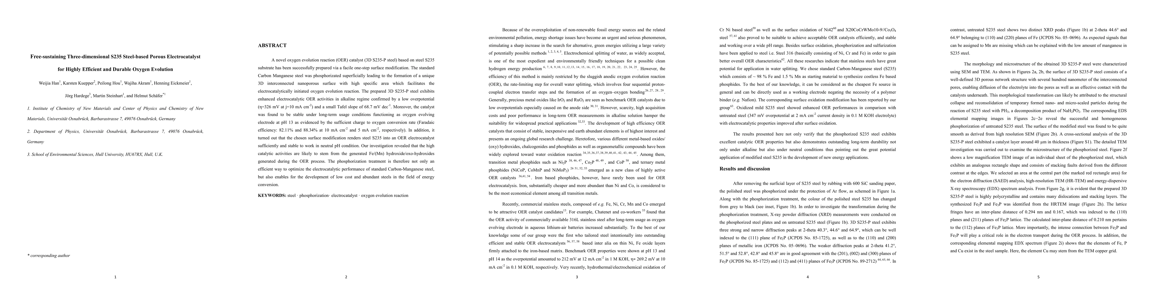 This paper presents a novel 3D porous electrocatalyst based on S235 steel, prepared via surface phosphorization, which shows enhanced oxygen evolution reaction (OER) activity with low overpotential and high stability, making it a cost-effective alternative for energy conversion applications. The catalyst's high performance is attributed to the formation of Fe/(Mn) hydroxide/oxo-hydroxides during the OER process.