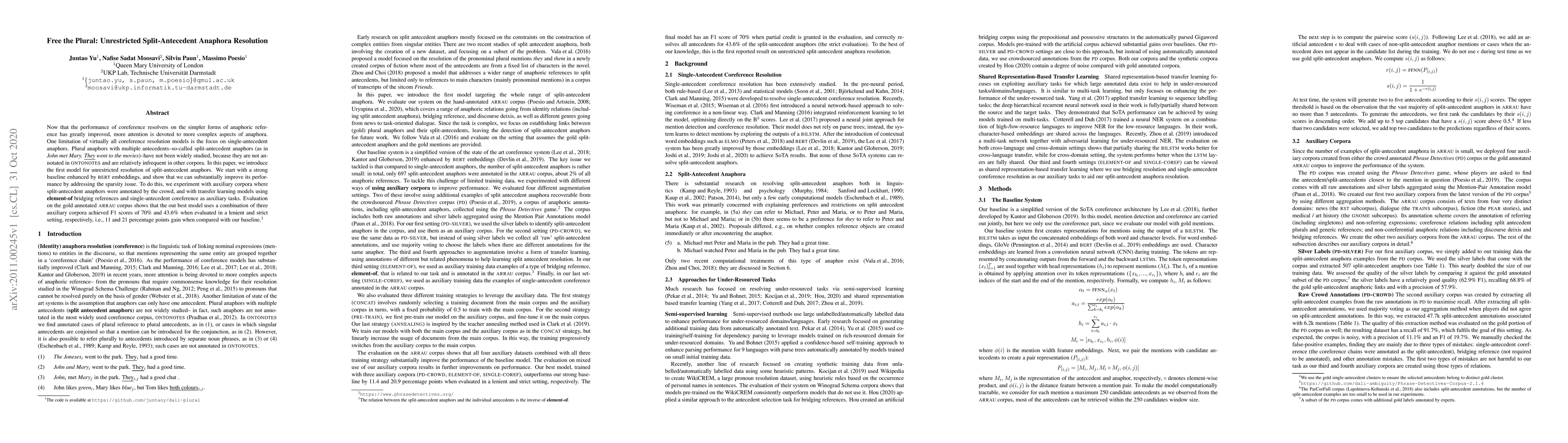 Massimo Poesio, Nafise Sadat Moosavi, Juntao Yu et al.