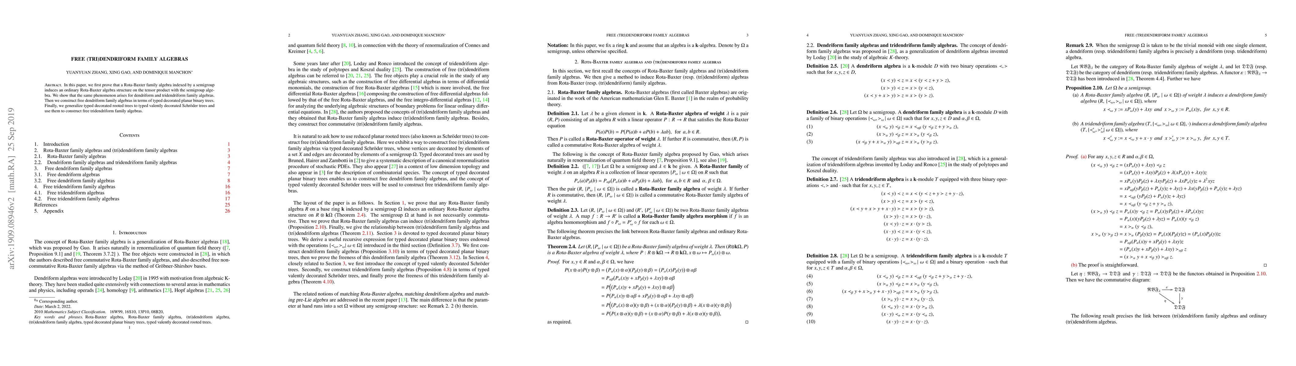 This paper proves that Rota-Baxter, dendriform, and tridendriform family algebras induce corresponding structures on tensor products with semigroup algebras. It constructs free dendriform and tridendriform family algebras using typed decorated planar and Schr\"oder trees, respectively.