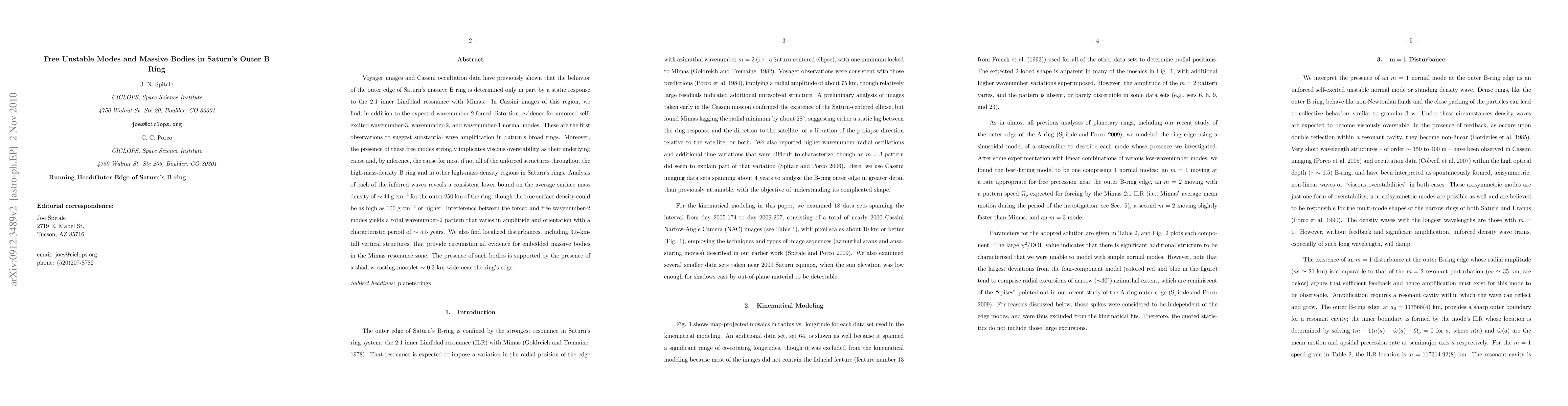 This research identifies unforced wave modes in Saturn's B ring, suggesting viscous overstability as their cause and indicating a high average surface mass density. It also reveals localized disturbances, including tall vertical structures, hinting at embedded massive bodies influencing the ring's dynamics.