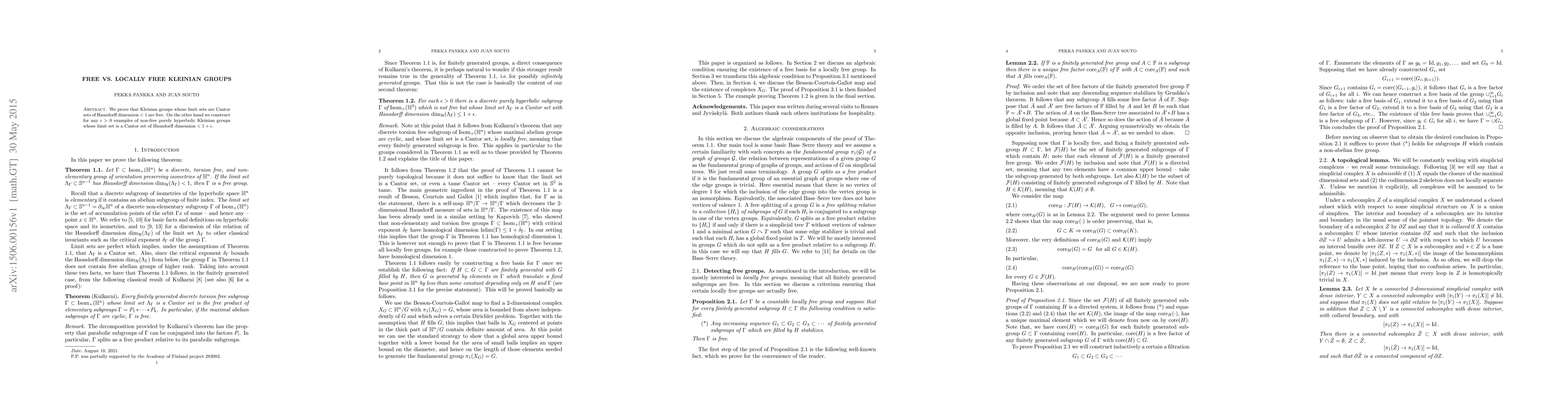 This paper proves that Kleinian groups with limit sets of Hausdorff dimension less than 1 are free. It also constructs examples of non-free purely hyperbolic Kleinian groups with limit sets of Hausdorff dimension approaching 1, showing the distinction between free and locally free groups.