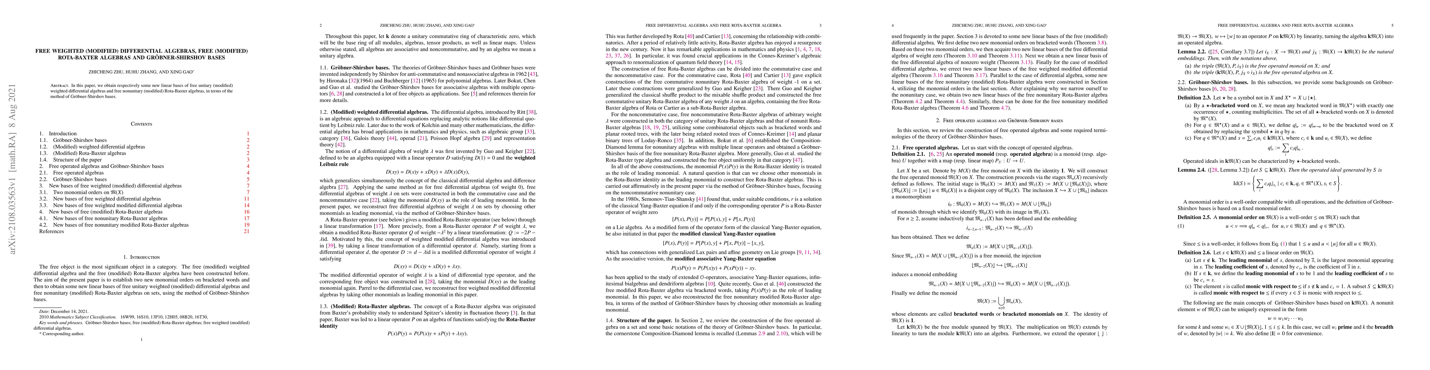 In this paper, we obtain respectively some new linear bases of free unitary (modified) weighted differential algebras and free nonunitary (modified) Rota-Baxter algebras, in terms of the method of Gr\"{o}bner-Shirshov bases.
