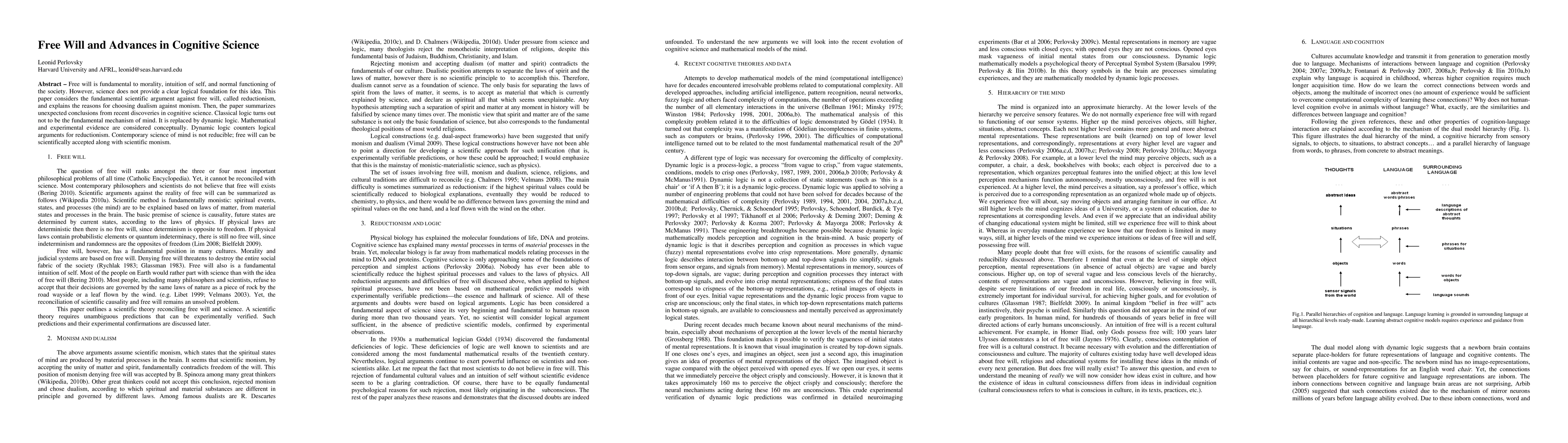 This paper explores the scientific argument against free will, advocating for dualism over monism, and highlights recent cognitive science discoveries that suggest dynamic logic, rather than classical logic, underpins the mind. It concludes that contemporary science supports the coexistence of free will and scientific monism.