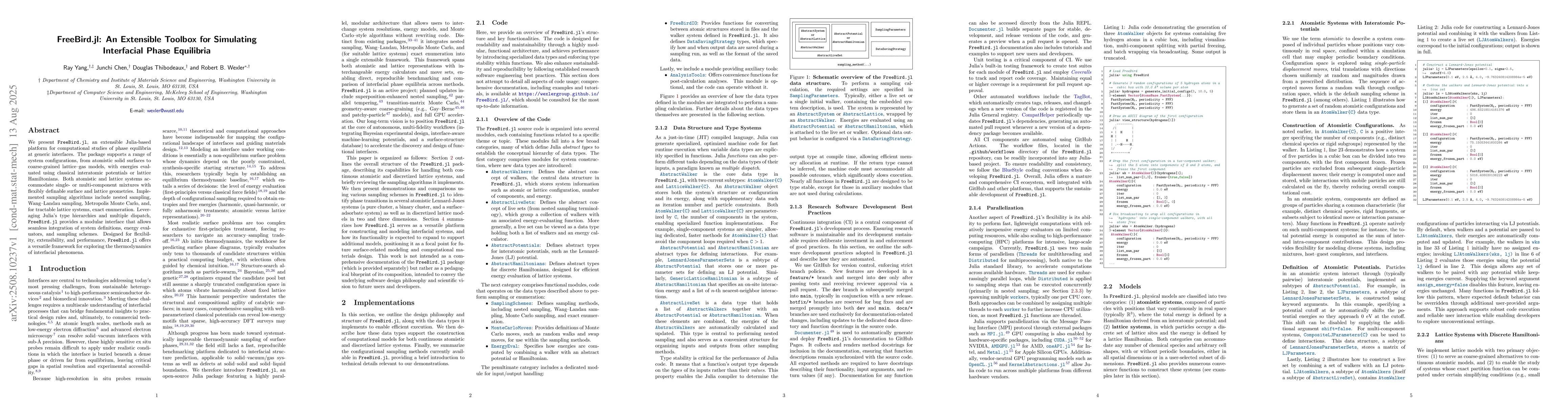 We present FreeBird.jl, an extensible Julia-based platform for computational studies of phase equilibria at generic interfaces. The package supports a range of system configurations, from atomistic solid surfaces to coarse-grained lattice$-$gas models, with energies evaluated using classical interatomic potentials or lattice Hamiltonians. Both atomistic and lattice systems accommodate single- or multi-component mixtures with flexibly definable surface and lattice geometries. Implemented sampling algorithms include nested sampling, Wang$-$Landau sampling, Metropolis Monte Carlo, and, for tractable lattice systems, exact enumeration. Leveraging Julia's type hierarchies and multiple dispatch, FreeBird.jl provides a modular interface that allows seamless integration of system definitions, energy evaluators, and sampling schemes. Designed for flexibility, extensibility, and performance, FreeBird.jl offers a versatile framework for exploring the thermodynamics of interfacial phenomena.