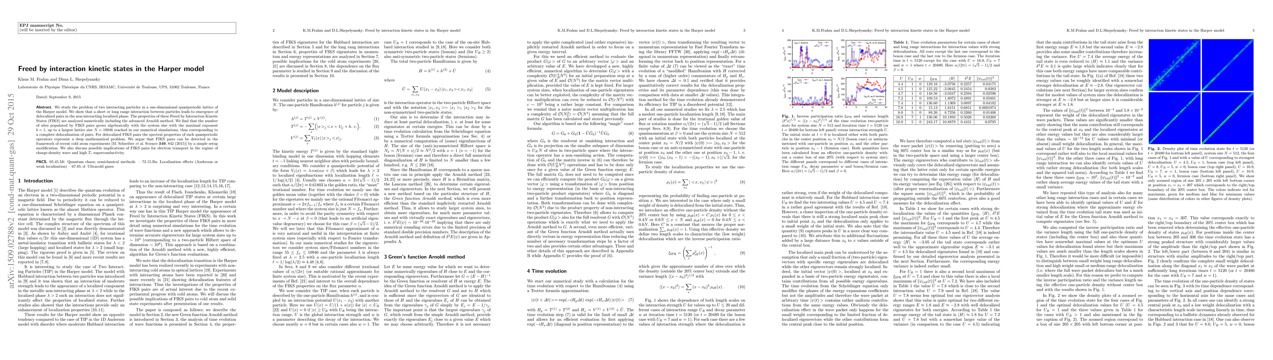 This research investigates the impact of particle interactions in a one-dimensional quasiperiodic lattice, using the Harper model. It reveals that both short and long-range interactions can create delocalized particle pairs within the non-interacting localized phase, termed Freed by Interaction Kinetic States (FIKS). Numerical analysis, including the advanced Arnoldi method, shows these FIKS pairs grow algebraically with system size, suggesting complete delocalization. The study also proposes experimental detection in cold atom setups and discusses implications for electron transport in charge-density wave and high $T_c$ superconductivity regimes.