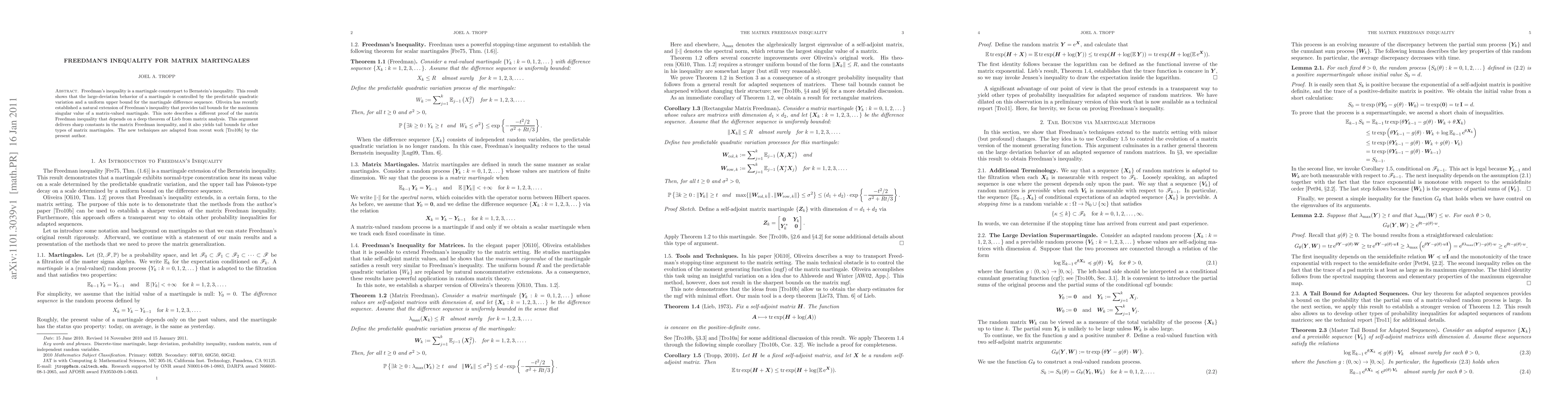 Freedman's inequality is a martingale counterpart to Bernstein's inequality. This result shows that the large-deviation behavior of a martingale is controlled by the predictable quadratic variation and a uniform upper bound for the martingale difference sequence. Oliveira has recently established a natural extension of Freedman's inequality that provides tail bounds for the maximum singular value of a matrix-valued martingale. This note describes a different proof of the matrix Freedman inequality that depends on a deep theorem of Lieb from matrix analysis. This argument delivers sharp constants in the matrix Freedman inequality, and it also yields tail bounds for other types of matrix martingales. The new techniques are adapted from recent work by the present author.