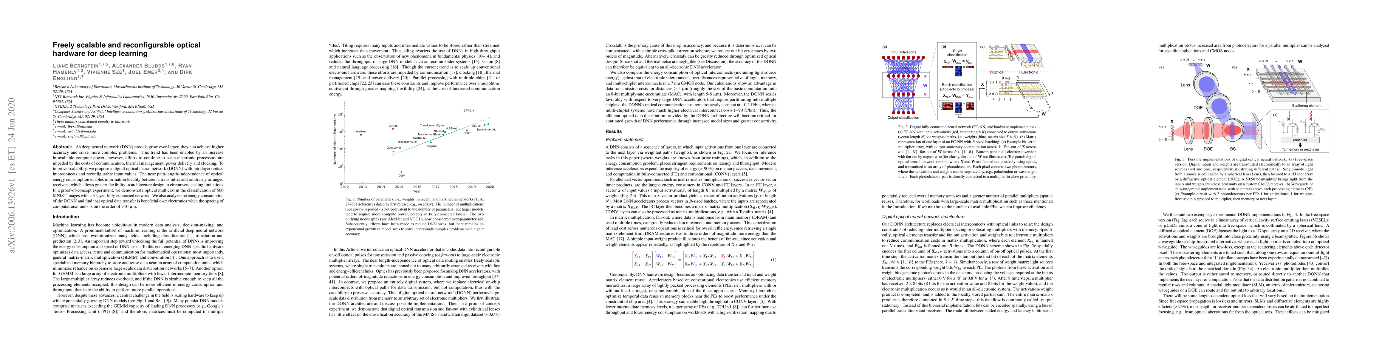 As deep neural network (DNN) models grow ever-larger, they can achieve higher accuracy and solve more complex problems. This trend has been enabled by an increase in available compute power; however, efforts to continue to scale electronic processors are impeded by the costs of communication, thermal management, power delivery and clocking. To improve scalability, we propose a digital optical neural network (DONN) with intralayer optical interconnects and reconfigurable input values. The near path-length-independence of optical energy consumption enables information locality between a transmitter and arbitrarily arranged receivers, which allows greater flexibility in architecture design to circumvent scaling limitations. In a proof-of-concept experiment, we demonstrate optical multicast in the classification of 500 MNIST images with a 3-layer, fully-connected network. We also analyze the energy consumption of the DONN and find that optical data transfer is beneficial over electronics when the spacing of computational units is on the order of >10 micrometers.