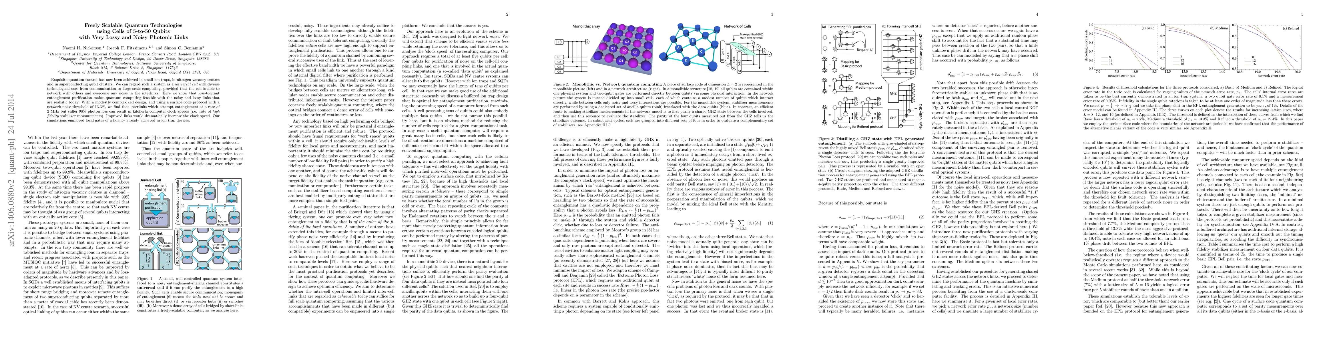 Exquisite quantum control has now been achieved in small ion traps, in nitrogen-vacancy centres and in superconducting qubit clusters. We can regard such a system as a universal cell with diverse technological uses from communication to large-scale computing, provided that the cell is able to network with others and overcome any noise in the interlinks. Here we show that loss-tolerant entanglement purification makes quantum computing feasible with the noisy and lossy links that are realistic today: With a modestly complex cell design, and using a surface code protocol with a network noise threshold of 13.3%, we find that interlinks which attempt entanglement at a rate of 2MHz but suffer 98% photon loss can result in kilohertz computer clock speeds (i.e. rate of high fidelity stabilizer measurements). Improved links would dramatically increase the clock speed. Our simulations employed local gates of a fidelity already achieved in ion trap devices.