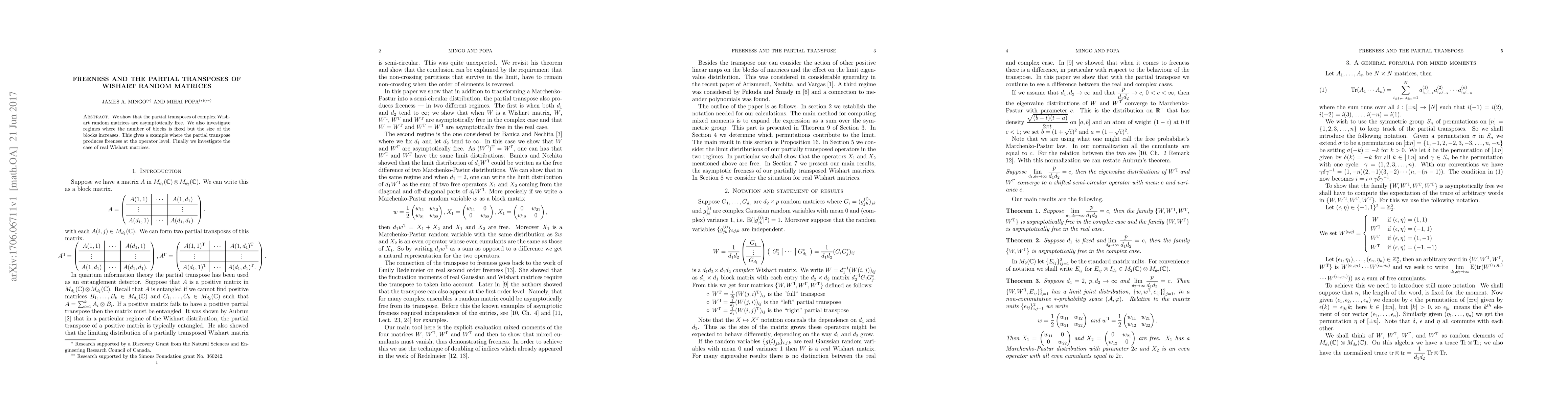 This paper demonstrates that the partial transposes of complex Wishart random matrices become asymptotically free, and explores scenarios where block sizes grow while the number of blocks remains constant. It also examines real Wishart matrices to understand operator-level freeness.