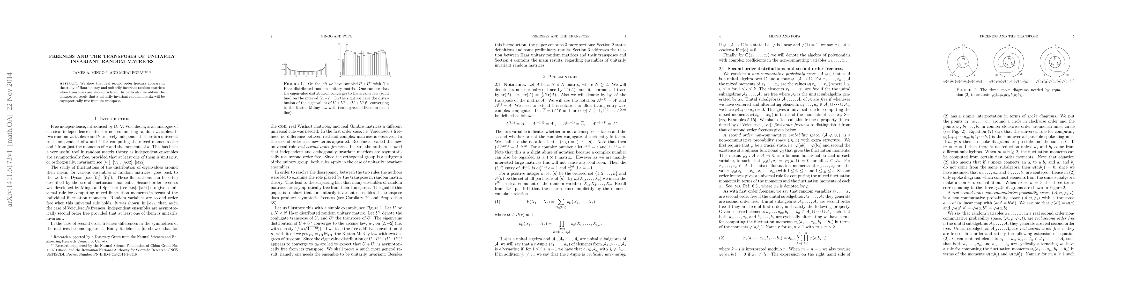 This paper demonstrates that real second-order freeness emerges in the context of Haar unitary and unitarily invariant random matrices, especially when transposes are included. It reveals the surprising result that a unitarily invariant random matrix becomes asymptotically free from its transpose.