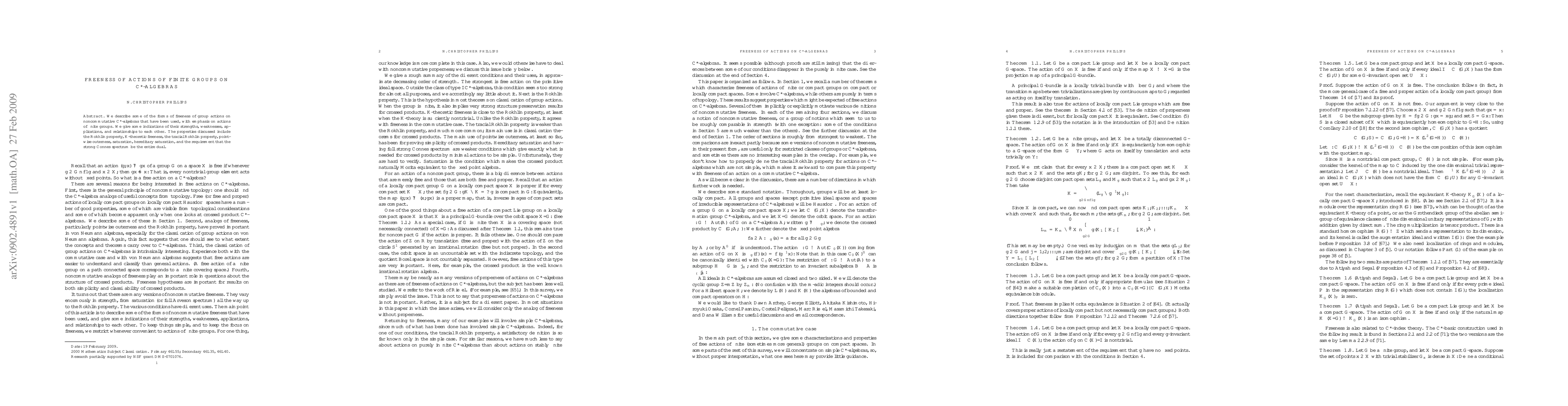 We describe some of the forms of freeness of group actions on noncommutative C*-algebras that have been used, with emphasis on actions of finite groups. We give some indications of their strengths, weaknesses, applications, and relationships to each other. The properties discussed include the Rokhlin property, K-theoretic freeness, the tracial Rokhlin property, pointwise outerness, saturation, hereditary saturation, and the requirement that the strong Connes spectrum be the entire dual.