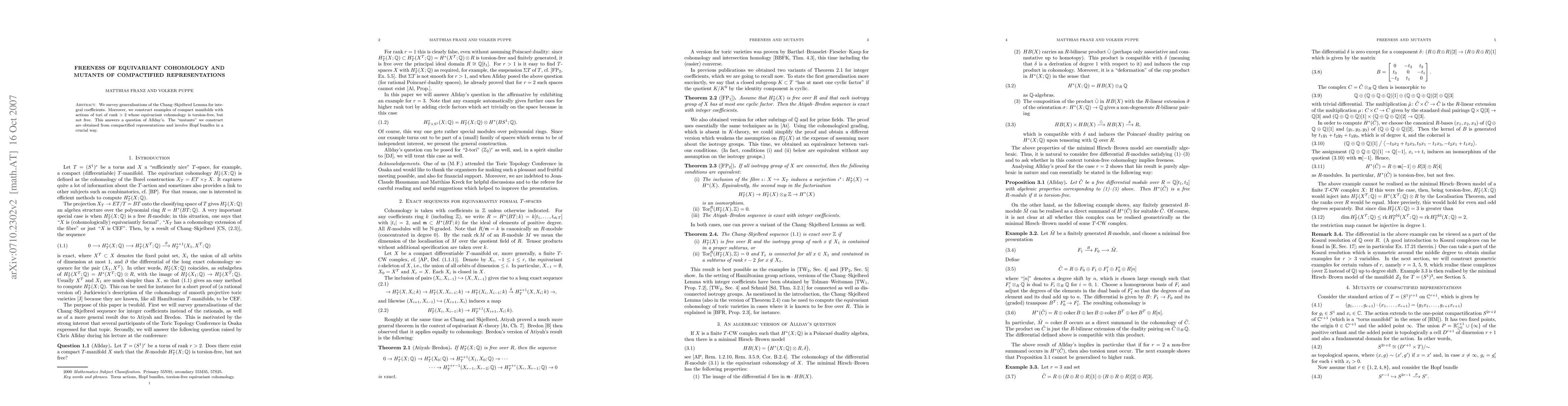 We survey generalisations of the Chang-Skjelbred Lemma for integral coefficients. Moreover, we construct examples of manifolds with actions of tori of rank > 2 whose equivariant cohomology is torsion-free, but not free. This answers a question of Allday's. The "mutants" we construct are obtained from compactified representations and involve Hopf bundles in a crucial way.