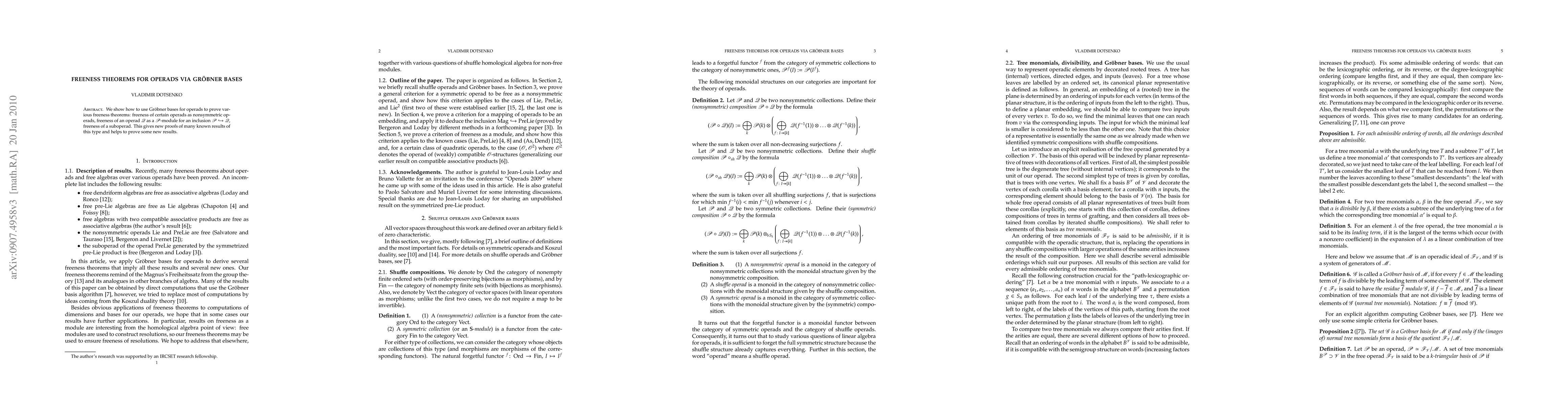The paper employs Groebner bases for operads to prove various freeness theorems, including freeness as nonsymmetric operads, freeness as modules, and freeness of suboperads.