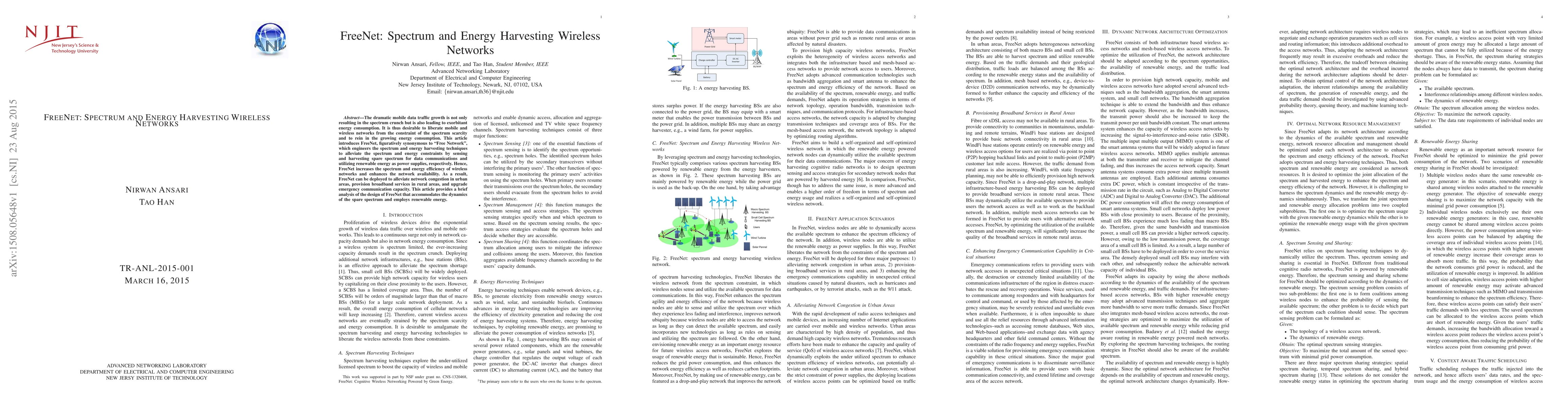 FreeNet is a new wireless network technology that harnesses spare spectrum and renewable energy to increase efficiency and availability, alleviating network congestion in urban areas and rural areas alike.