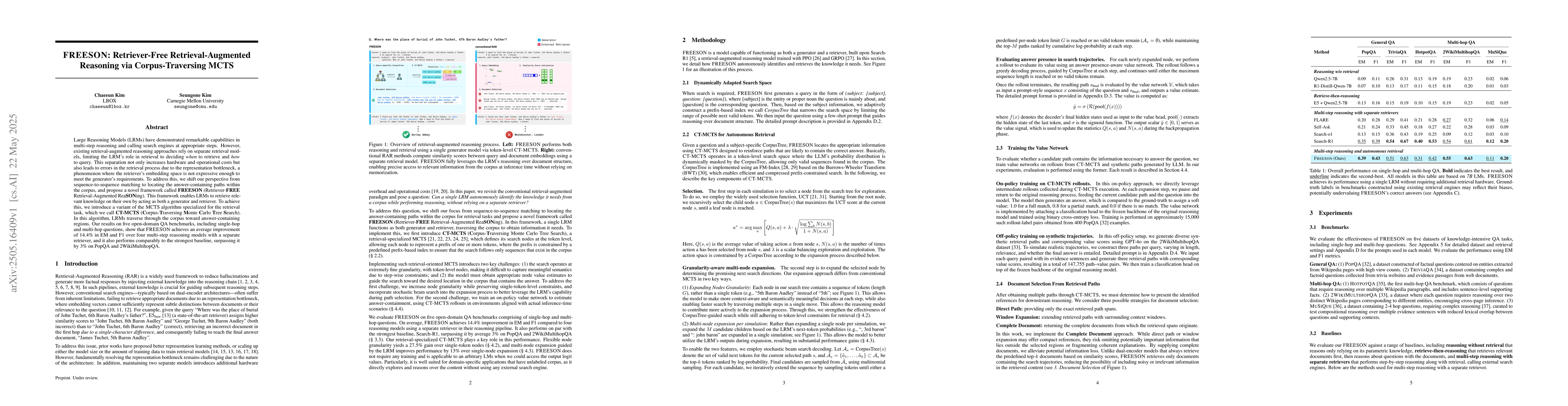 FREESON proposes a novel framework that enables Large Reasoning Models to retrieve relevant knowledge without separate retriever models, improving performance on open-domain QA benchmarks by 14.4% on average.