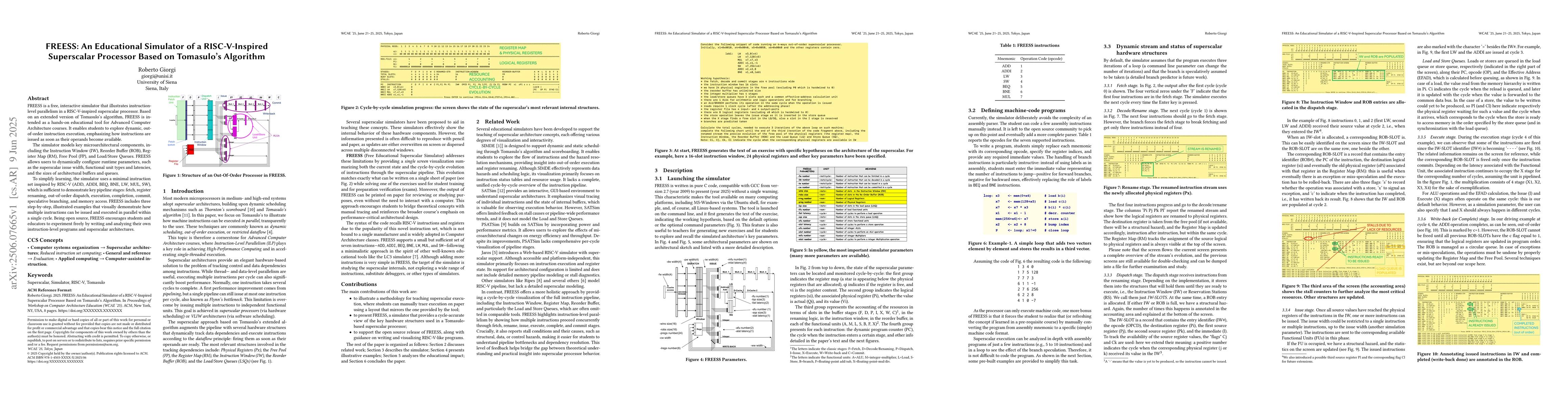 A free simulator called FREESS illustrates instruction-level parallelism in a RISC-V-inspired superscalar processor based on Tomasulo's algorithm, teaching computer architecture concepts through interactive exploration.