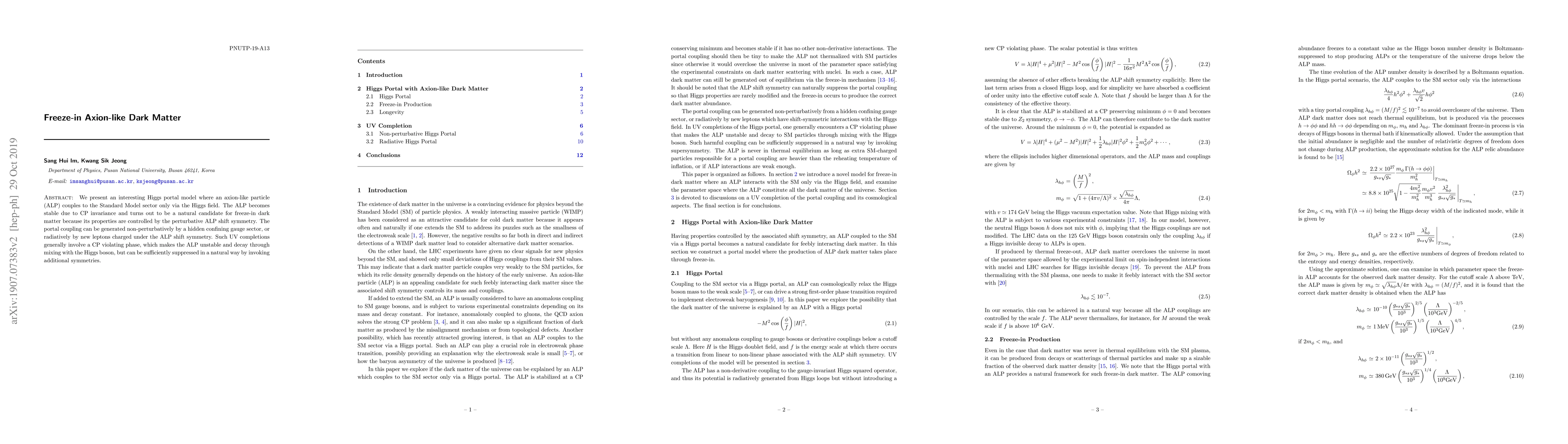 Researchers propose a new model for axion-like dark matter that uses a 'Higgs portal' to connect the Standard Model to an axion-like particle, making it a potential candidate for freeze-in dark matter.