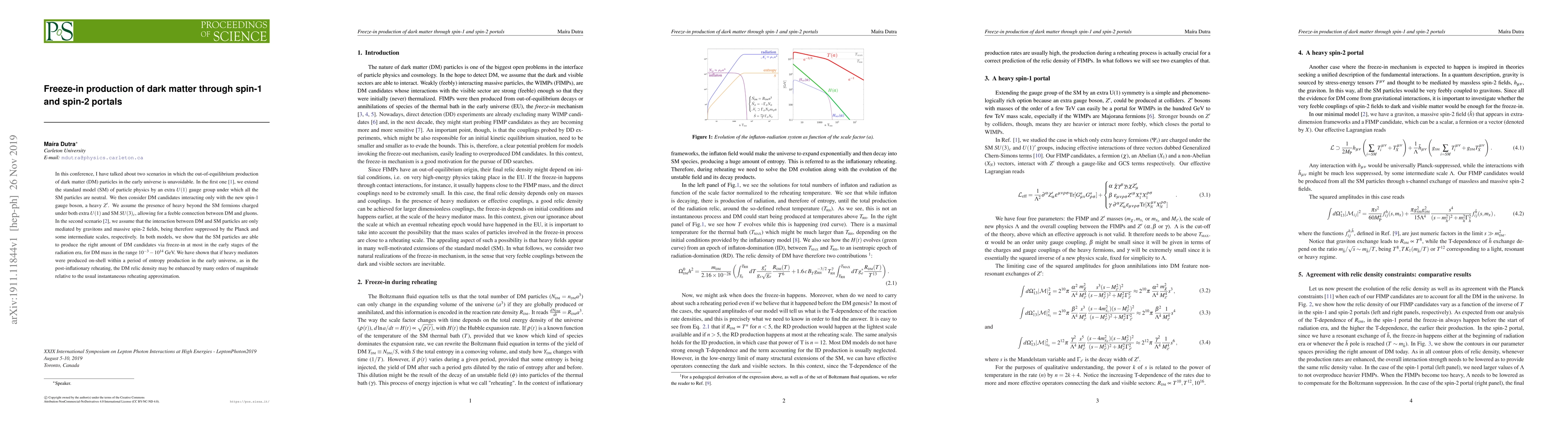 Freeze-in production of dark matter through spin-1 and spin-2 portals is studied using a combination of theoretical models and cosmological constraints.