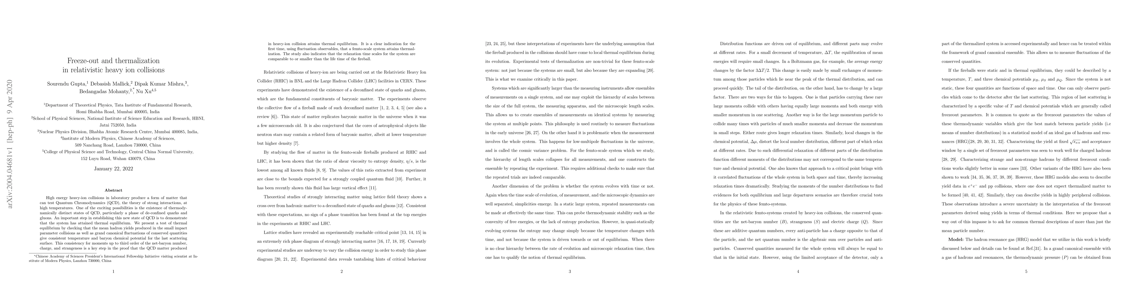 This paper demonstrates that high-energy heavy-ion collisions produce a thermalized state of Quantum Chromodynamics matter, using consistency in hadron yields and fluctuations of conserved quantities as evidence. It concludes that the system reaches thermal equilibrium and that relaxation times are short compared to the fireball's lifetime.