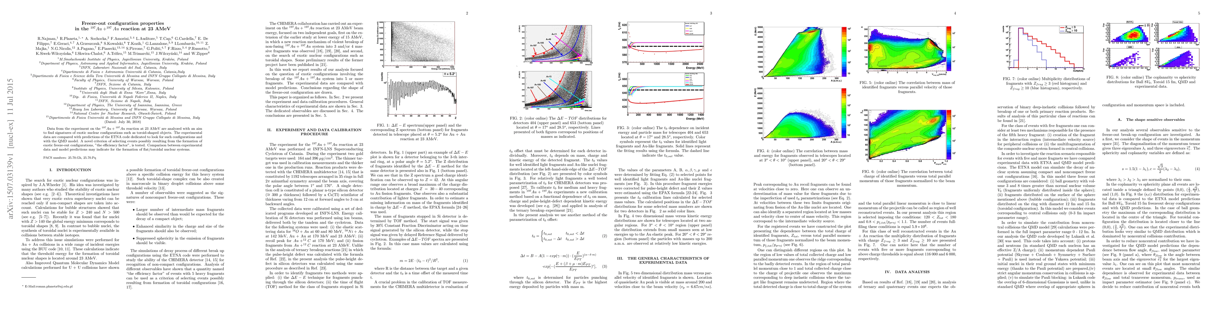 Data from the experiment on the 197Au + 197Au reaction at 23 AMeV are analyzed with an aim to find signatures of exotic nuclear configurations such as toroid-shaped objects. The experimental data are compared with predictions of the ETNA code dedicated to look for such configurations and with the QMD model. A novel criterion of selecting events possibly resulting from the formation of exotic freeze-out configurations, "the efficiency factor", is tested. Comparison between experimental data and model predictions may indicate for the formation of flat/toroidal nuclear systems.