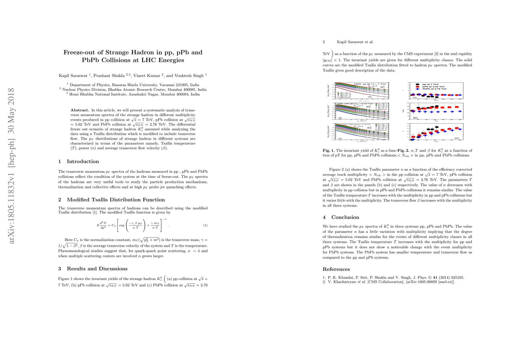 In this article, we will present a systematic analysis of transverse momentum spectra of the strange hadron in different multiplicity events produced in pp collision at $\sqrt{s}$ = 7 TeV, pPb collision at $\sqrt{s_{NN}}$ = 5.02 TeV and PbPb collision at $\sqrt{s_{NN}}$ = 2.76 TeV. The differential freeze out scenario of strange hadron $K^{0}_{s}$ assumed while analyzing the data using a Tsallis distribution which is modified to include transverse flow. The $p_{T}$ distributions of strange hadron in different systems are characterized in terms of the parameters namely, Tsallis temperature ($T$), power ($n$) and average transverse flow velocity ($\beta$).