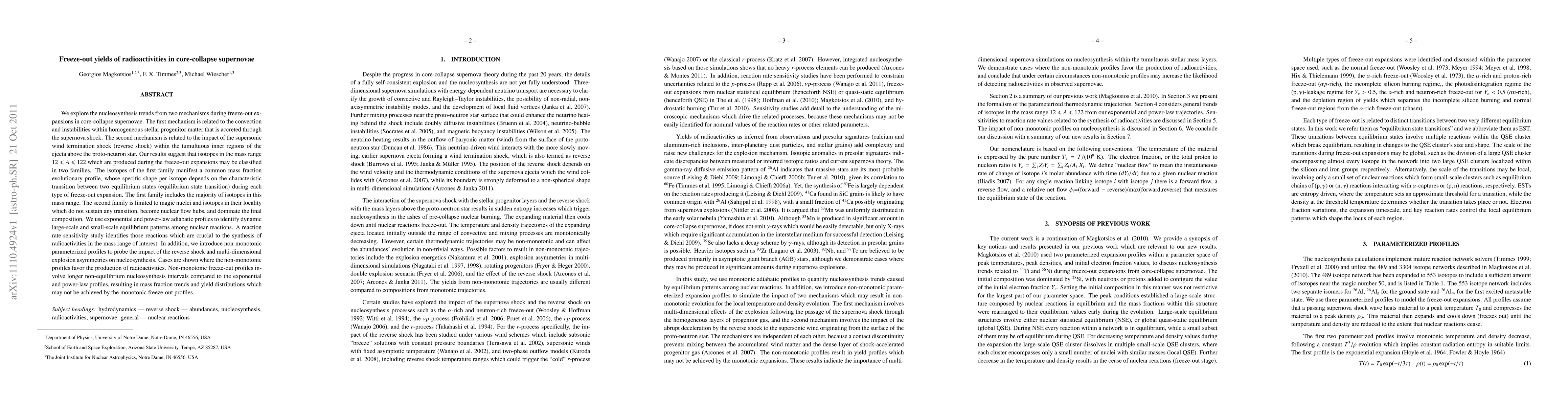 We explore the nucleosynthesis trends from two mechanisms during freeze-out expansions in core-collapse supernovae. The first mechanism is related to the convection and instabilities within homogeneous stellar progenitor matter that is accreted through the supernova shock. The second mechanism is related to the impact of the supersonic wind termination shock (reverse shock) within the tumultuous inner regions of the ejecta above the proto-neutron star. Our results suggest that isotopes in the mass range 12<=A<=122 that are produced during the freeze-out expansions may be classified in two families. The isotopes of the first family manifest a common mass fraction evolutionary profile, whose specific shape per isotope depends on the characteristic transition between two equilibrium states (equilibrium state transition) during each type of freeze-out expansion. The first family includes the majority of isotopes in this mass range. The second family is limited to magic nuclei and isotopes in their locality, which do not sustain any transition, become nuclear flow hubs, and dominate the final composition. We use exponential and power-law adiabatic profiles to identify dynamic large-scale and small-scale equilibrium patterns among nuclear reactions. (truncated abstract) In addition, we introduce non-monotonic parameterized profiles to probe the impact of the reverse shock and multi-dimensional explosion asymmetries on nucleosynthesis. Cases are shown in which the non-monotonic profiles favor the production of radioactivities. Non-monotonic freeze-out profiles involve longer non-equilibrium nucleosynthesis intervals compared with the exponential and power-law profiles, resulting in mass fraction trends and yield distributions that may not be achieved by the monotonic freeze-out profiles.
