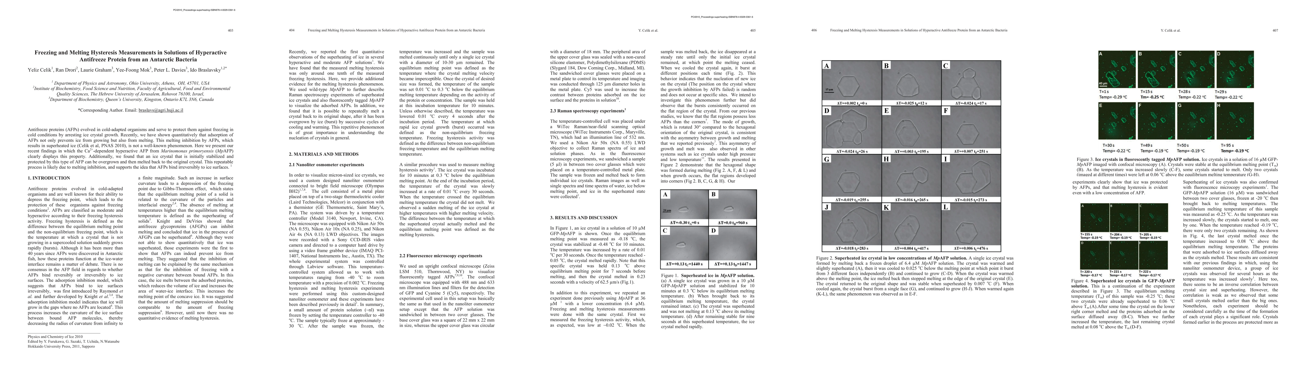 This study investigates the freezing and melting hysteresis of hyperactive antifreeze proteins (AFPs) from Antarctic bacteria, specifically the Ca2+-dependent AFP from Marinomonas primoryensis (MpAFP). The research reveals that MpAFP inhibits ice melting, leading to superheated ice, and demonstrates a repeatable process of ice stabilization, overgrowth, and melting back, supporting the irreversible binding of AFPs to ice surfaces.