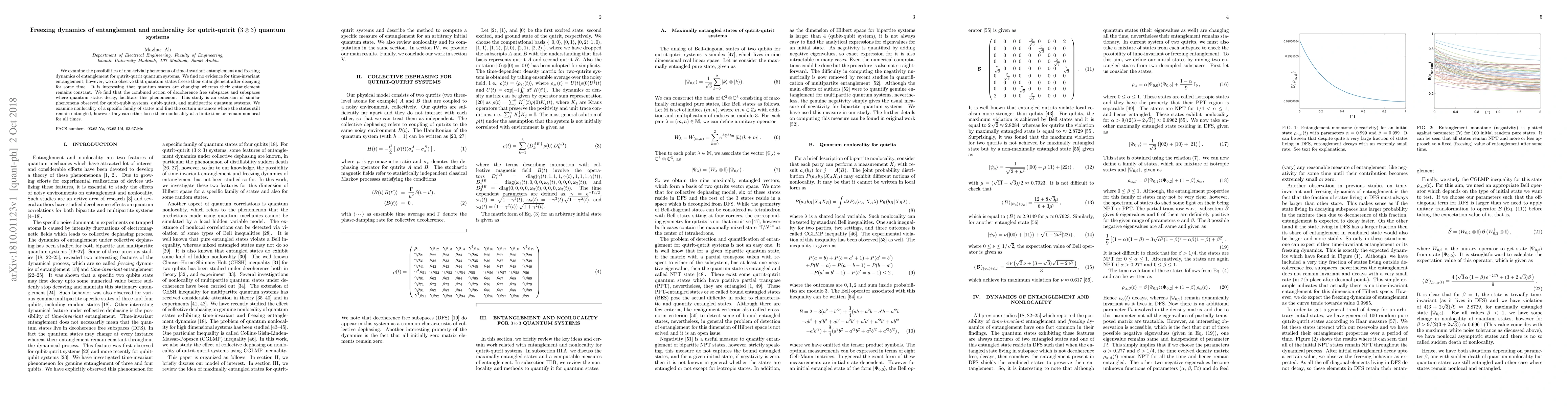 This paper investigates the freezing dynamics of entanglement and nonlocality in qutrit-qutrit quantum systems, finding no time-invariant entanglement but observing that entanglement can remain constant even as quantum states decay. The study highlights the role of decoherence-free subspaces in facilitating this phenomenon.