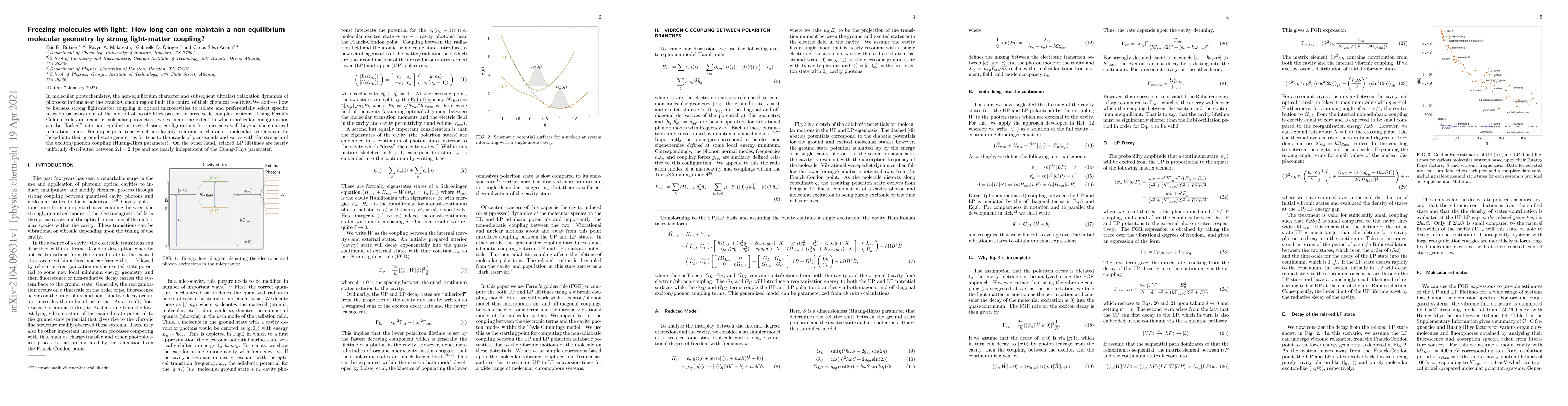 In molecular photochemistry, the non-equilibrium character and subsequent ultrafast relaxation dynamics of photoexcitations near the Franck-Condon region limit the control of their chemical reactivity. We address how to harness strong light-matter coupling in optical microcavities to isolate and preferentially select specific reaction pathways out of the myriad of possibilities present in large-scale complex systems. Using Fermi's Golden Rule and realistic molecular parameters, we estimate the extent to which molecular configurations can be "locked" into non-equilibrium excited state configurations for timescales well beyond their natural relaxation times. For upper polaritons--which are largely excitonic in character, molecular systems can be locked into their ground state geometries for tens to thousands of picoseconds and varies with the strength of the exciton/phonon coupling (Huang-Rhys parameter). On the other hand, relaxed LP lifetimes are nearly uniformly distributed between 2.1-2.4\,ps and are nearly independent of the Huang-Rhys parameter.