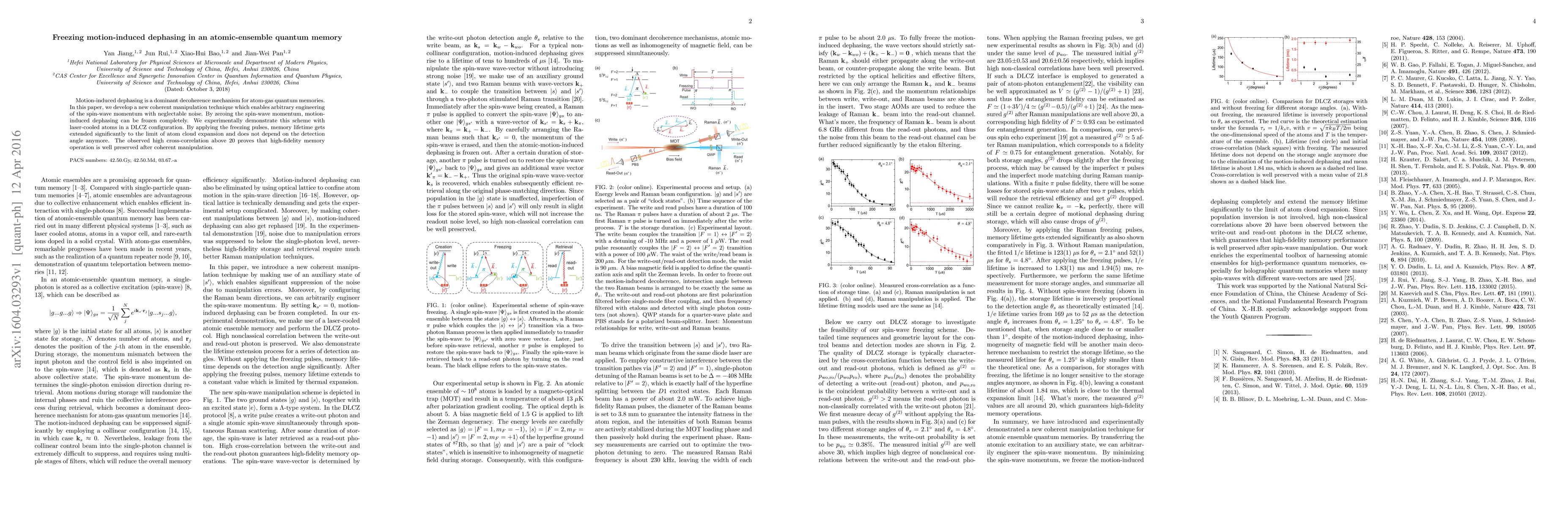 This paper presents a novel technique to freeze motion-induced dephasing in atom-gas quantum memories by engineering spin-wave momentum with negligible noise, significantly extending memory lifetime and preserving high-fidelity operation. Experimental results with laser-cooled atoms in a DLCZ configuration show a substantial increase in memory lifetime and high cross-correlation above 20.