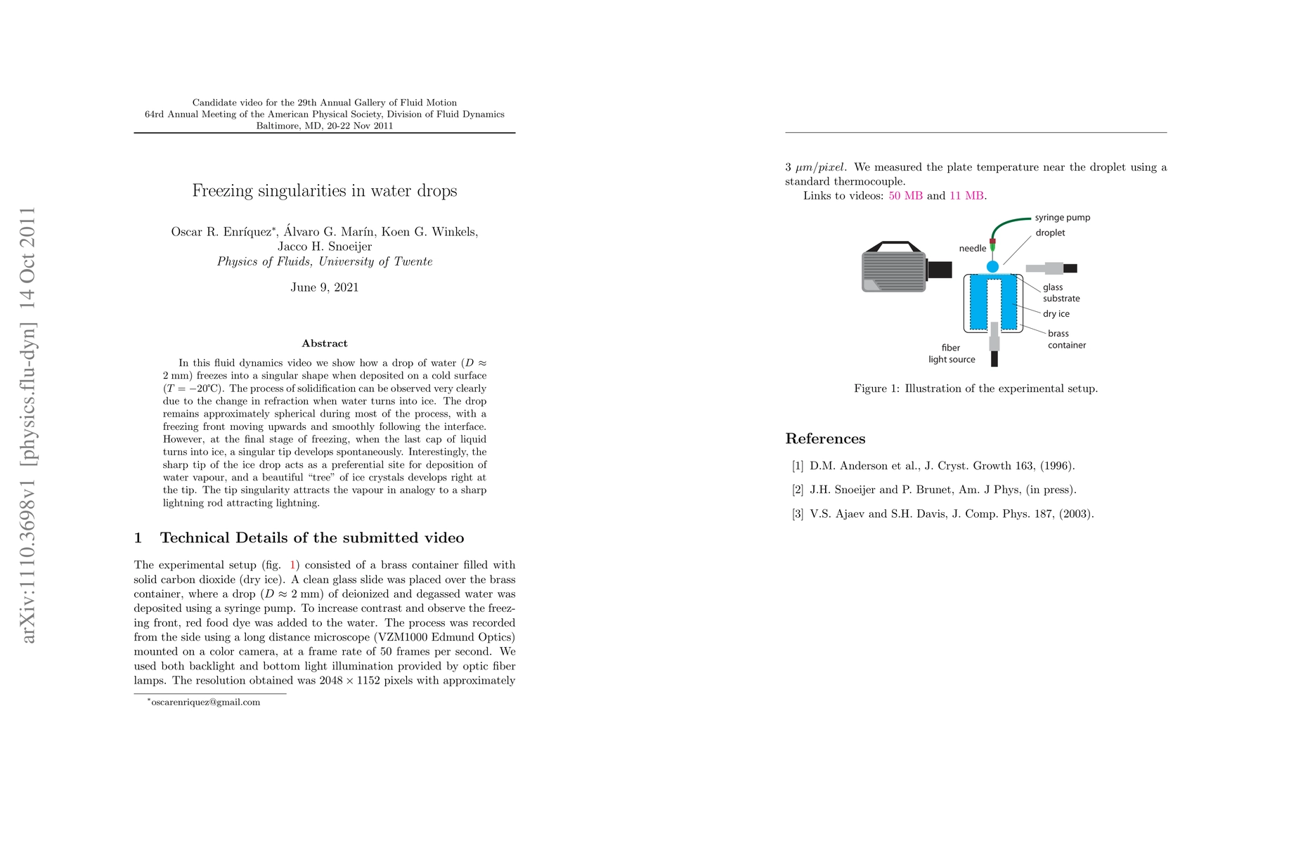 In this fluid dynamics video we show how a drop of water freezes into a singular shape when deposited on a cold surface. The process of solidification can be observed very clearly due to the change in refraction when water turns into ice. The drop remains approximately spherical during most of the process, with a freezing front moving upwards and smoothly following the interface. However, at the final stage of freezing, when the last cap of liquid turns into ice, a singular tip develops spontaneously. Interestingly, the sharp tip of the ice drop acts as a preferential site for deposition of water vapour, and a beautiful "tree" of ice crystals develops right at the tip. The tip singularity attracts the vapour in analogy to a sharp lightning rod attracting lightning.