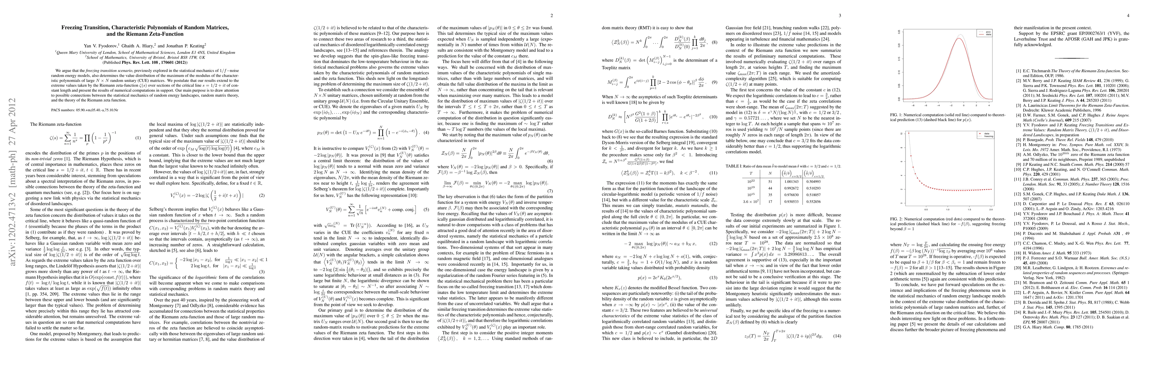 This paper explores the freezing transition in statistical mechanics and links it to the distribution of the maximum modulus of characteristic polynomials of large random unitary matrices (CUE). It also conjectures connections to the extreme values of the Riemann zeta-function along the critical line, supported by numerical computations.