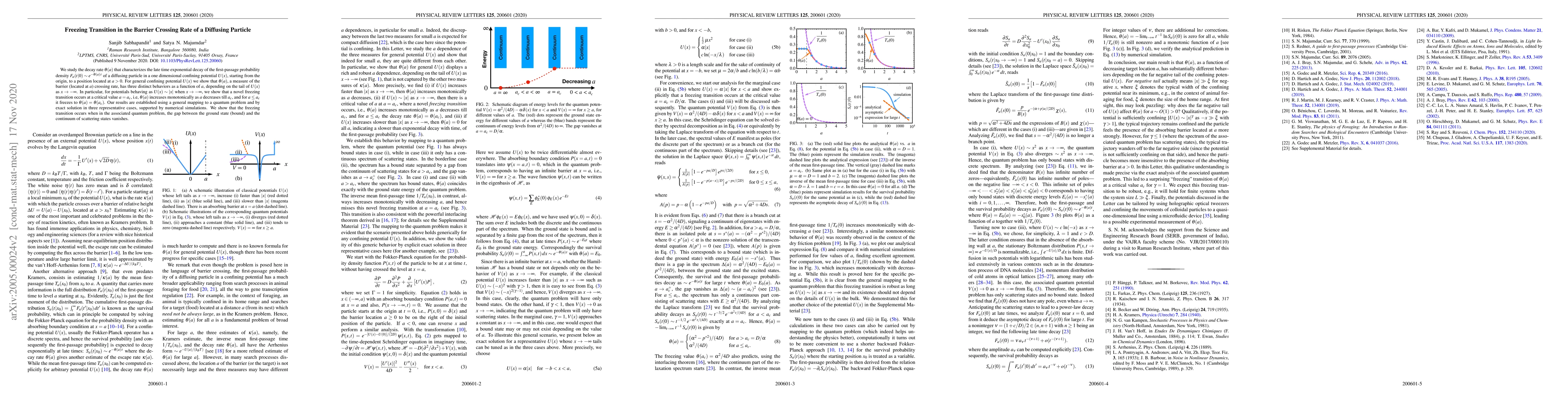 We study the decay rate $\theta(a)$ that characterizes the late time exponential decay of the first-passage probability density $F_a(t|0) \sim e^{-\theta(a)\, t}$ of a diffusing particle in a one dimensional confining potential $U(x)$, starting from the origin, to a position located at $a>0$. For general confining potential $U(x)$ we show that $\theta(a)$, a measure of the barrier (located at $a$) crossing rate, has three distinct behaviors as a function of $a$, depending on the tail of $U(x)$ as $x\to -\infty$. In particular, for potentials behaving as $U(x)\sim |x|$ when $x\to -\infty$, we show that a novel freezing transition occurs at a critical value $a=a_c$, i.e, $\theta(a)$ increases monotonically as $a$ decreases till $a_c$, and for $a \le a_c$ it freezes to $\theta (a)=\theta(a_c)$. Our results are established using a general mapping to a quantum problem and by exact solution in three representative cases, supported by numerical simulations. We show that the freezing transition occurs when in the associated quantum problem, the gap between the ground state (bound) and the continuum of scattering states vanishes.