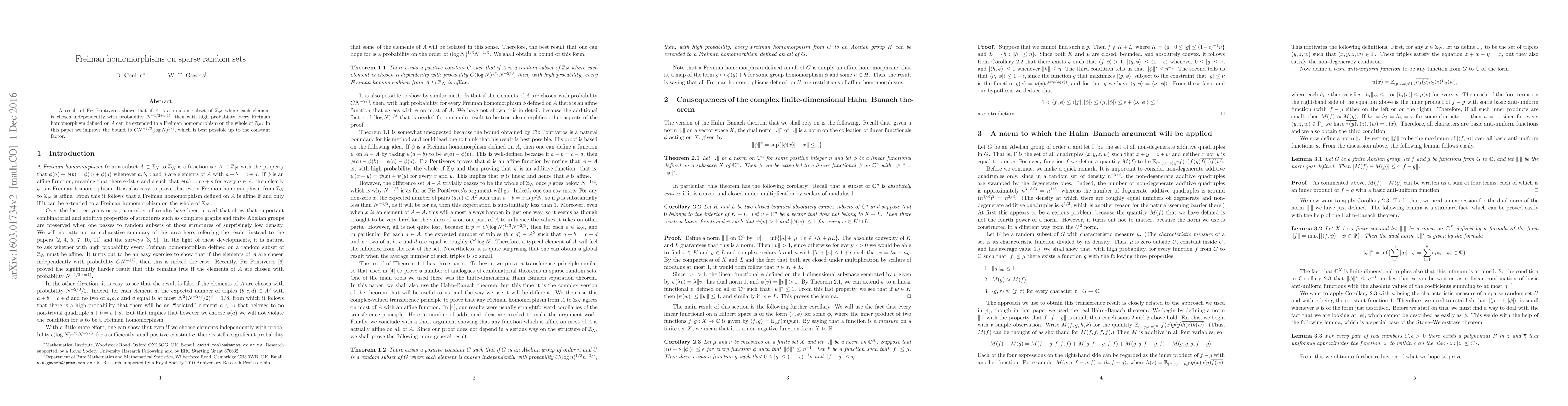 This paper improves the bound on the probability that Freiman homomorphisms defined on sparse random subsets of $\mathbb{Z}_N$ can be extended to the whole set, achieving a best-possible bound of $CN^{-2/3}(\log N)^{1/3}$.