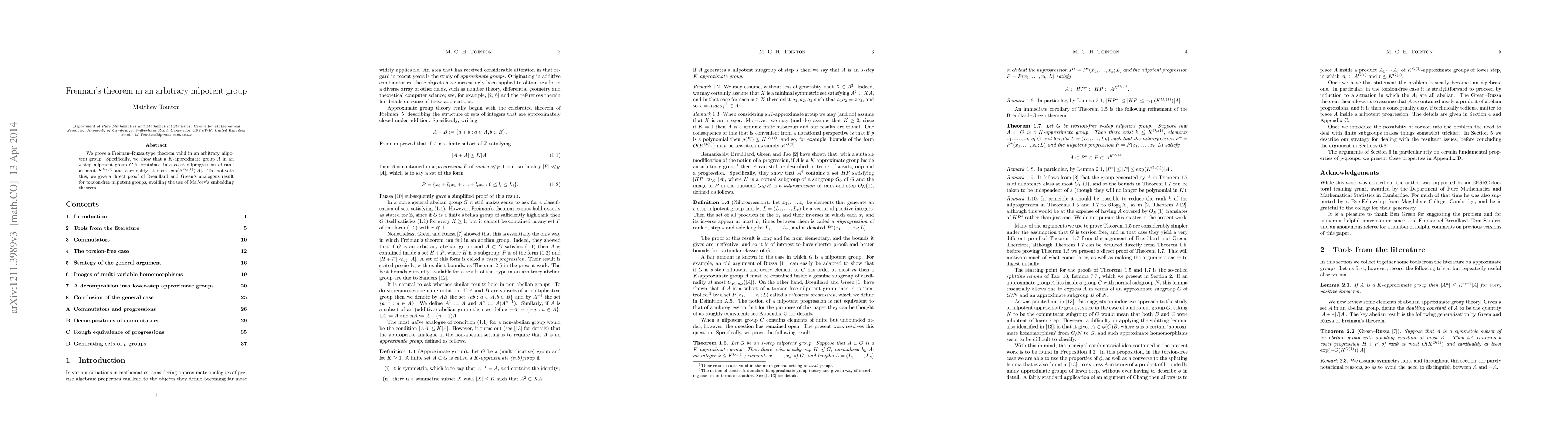 Researchers prove a Freiman-Ruzsa-type theorem for arbitrary nilpotent groups, showing that K-approximate subgroups can be contained within coset nilprogressions with specific bounds on rank and cardinality.