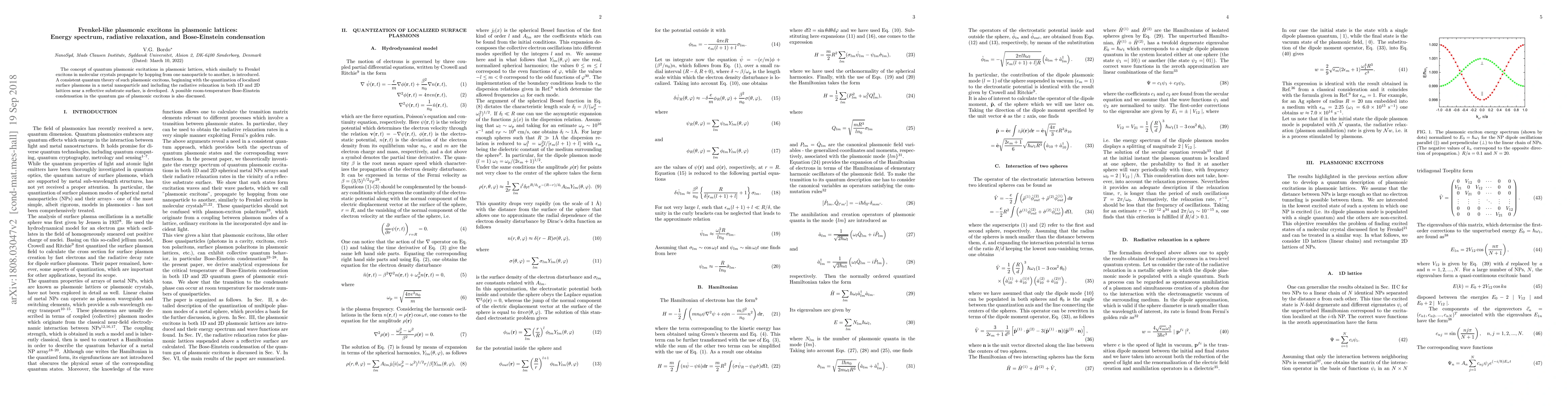 This paper introduces quantum plasmonic excitations in plasmonic lattices akin to Frenkel excitons, develops a quantum theory for their energy spectrum and radiative relaxation, and explores the potential for Bose-Einstein condensation in these excitations at room temperature.