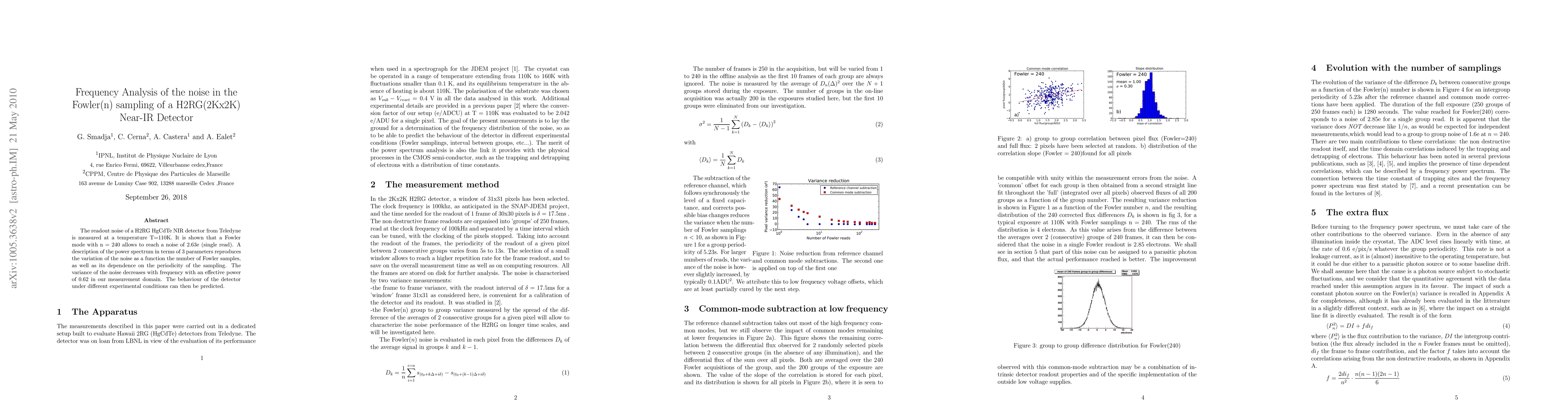 Researchers measured the readout noise of a H2RG NIR detector at 110K and found that using Fowler mode with n = 240 reduces noise to 2.63e single read. The power spectrum analysis revealed a decrease in noise variance with frequency, allowing for predictions under different experimental conditions.
