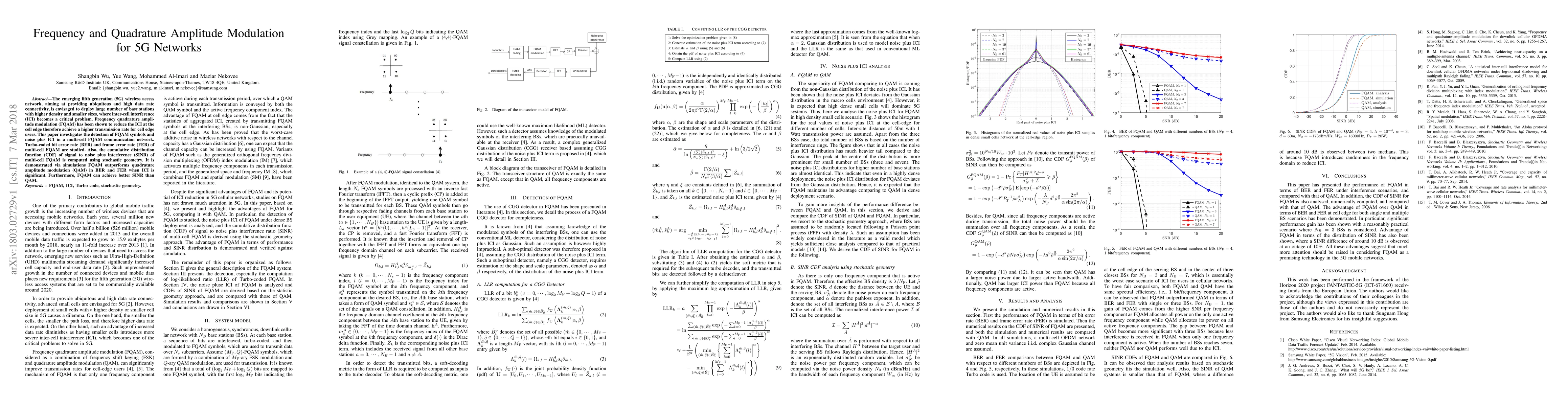 The paper investigates the detection of Frequency Quadrature Amplitude Modulation (FQAM) symbols in a multi-cell communication network, considering noise plus inter-cell interference (ICI). It studies Turbo-coded Bit Error Rate (BER) and Frame Error Rate (FER) of multi-cell FQAM, and computes the Cumulative Distribution Function (CDF) of Signal to Noise plus Interference (SINR) using stochastic geometry.