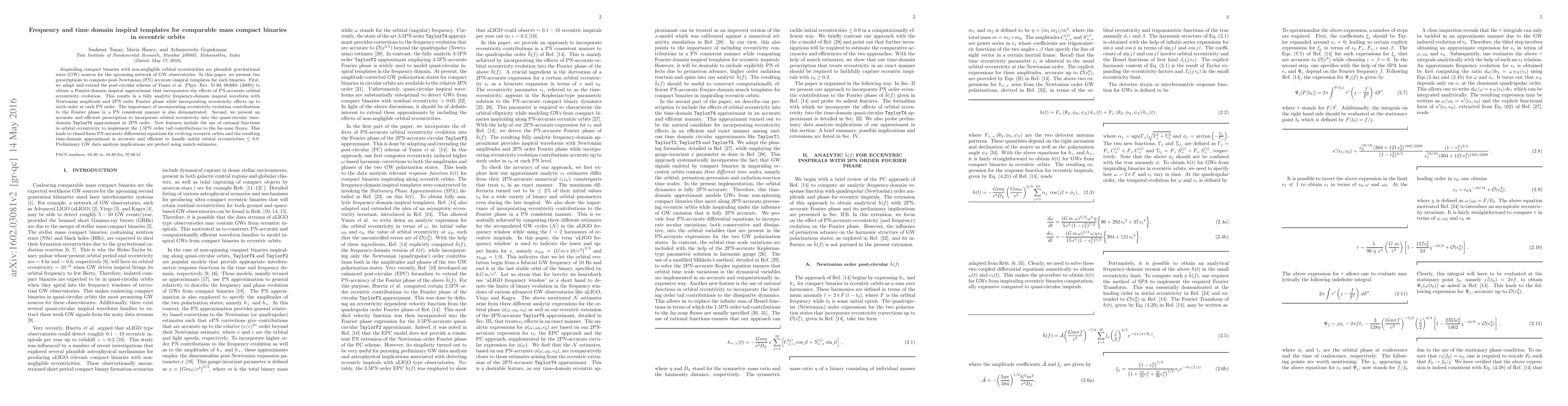 This paper develops two methods for generating post-Newtonian accurate inspiral templates for compact binaries with significant orbital eccentricities. The first method creates a Fourier-domain approximant with Newtonian amplitude and 2PN order phase, incorporating eccentricity effects up to sixth order. The second method extends the quasi-circular time-domain {\texttt{TaylorT4}} approximant to handle eccentricities up to 0.9, using rational functions for 1.5PN tail contributions.