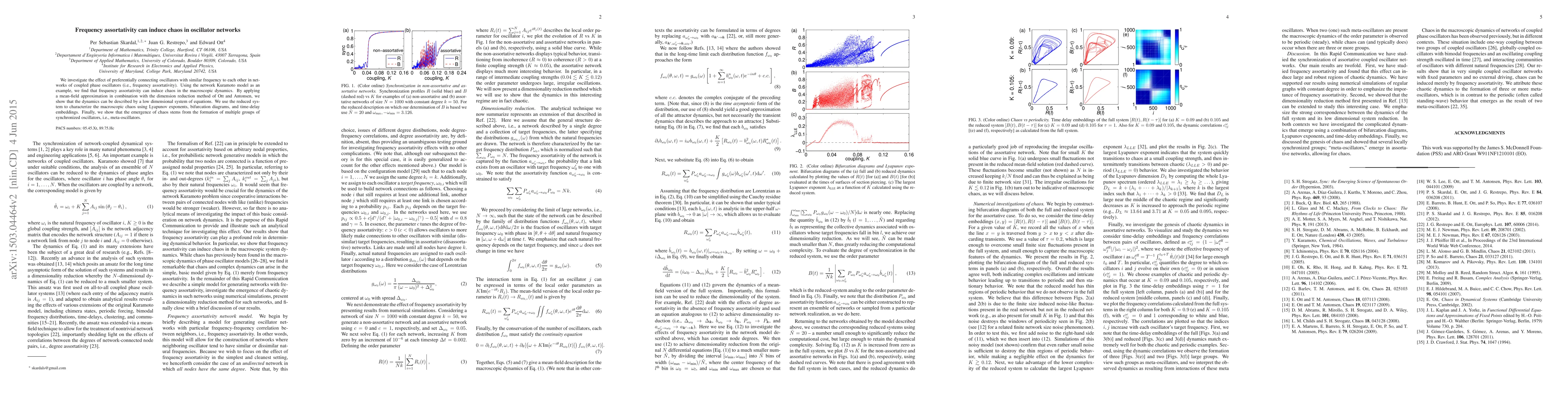 We investigate the effect of preferentially connecting oscillators with similar frequency to each other in networks of coupled phase oscillators (i.e., frequency assortativity). Using the network Kuramoto model as an example, we find that frequency assortativity can induce chaos in the macroscopic dynamics. By applying a mean-field approximation in combination with the dimension reduction method of Ott and Antonsen, we show that the dynamics can be described by a low dimensional system of equations. We use the reduced system to characterize the macroscopic chaos using Lyapunov exponents, bifurcation diagrams, and time-delay embeddings. Finally, we show that the emergence of chaos stems from the formation of multiple groups of synchronized oscillators, i.e., meta-oscillators.